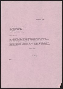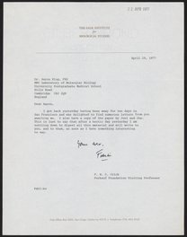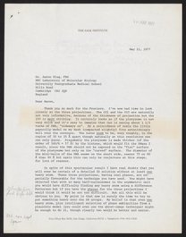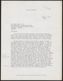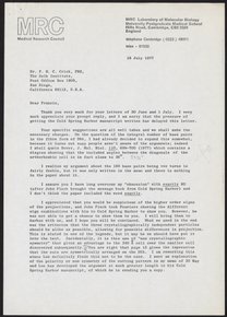 Letter from Francis Crick to Aaron Klug, April 29, 1977