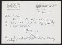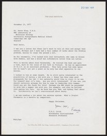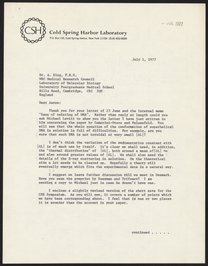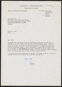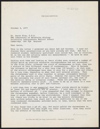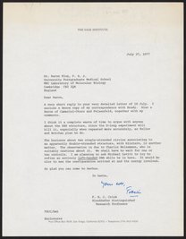 Letter from Francis Crick to Aaron Klug, September 1, 1977