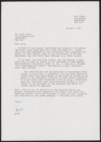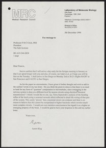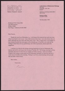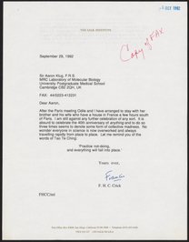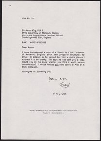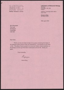 Letter from Aaron Klug to Gerd Buchdahl, April 29, 1993
