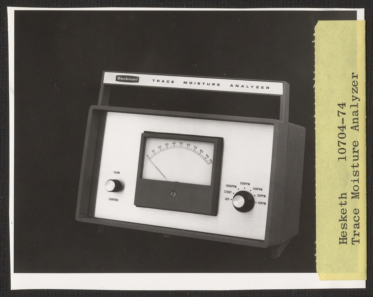Hesketh, Dean D. “Beckman Trace Moisture Analyzer,” circa 1969. Beckman Historical Collection, Box 84. Science History Institute. Philadelphia. https://digital.sciencehistory.org/works/00000024k.