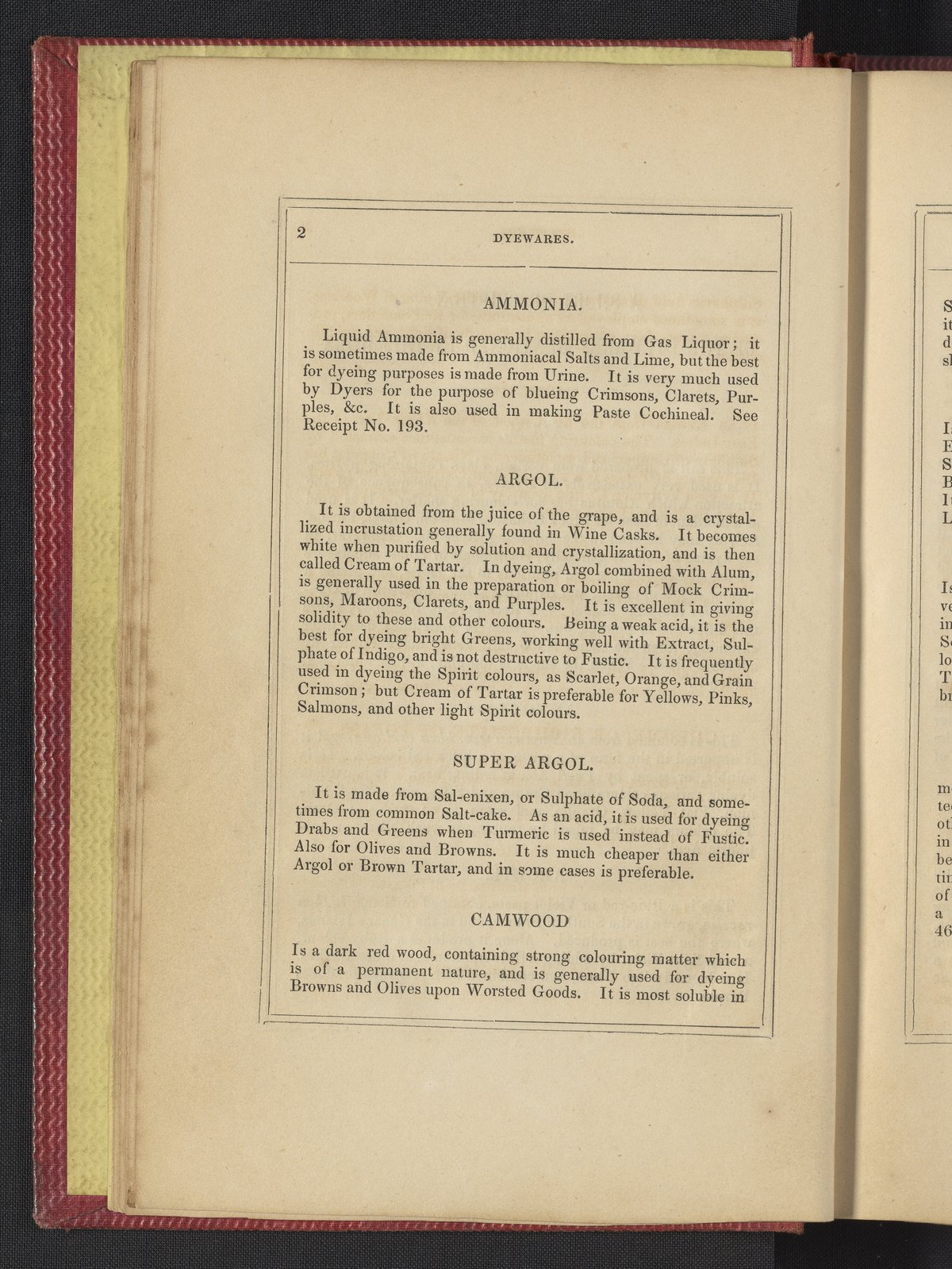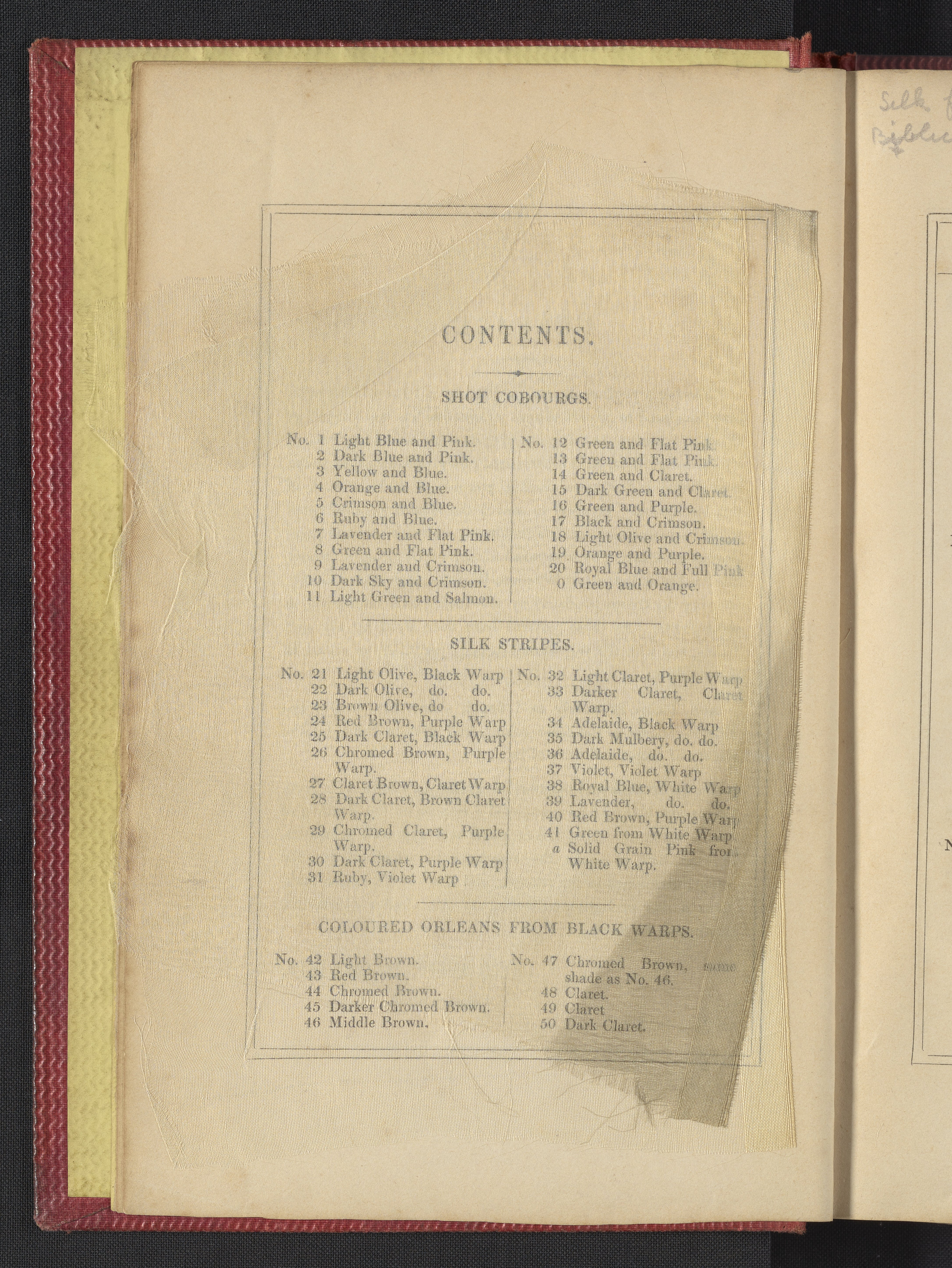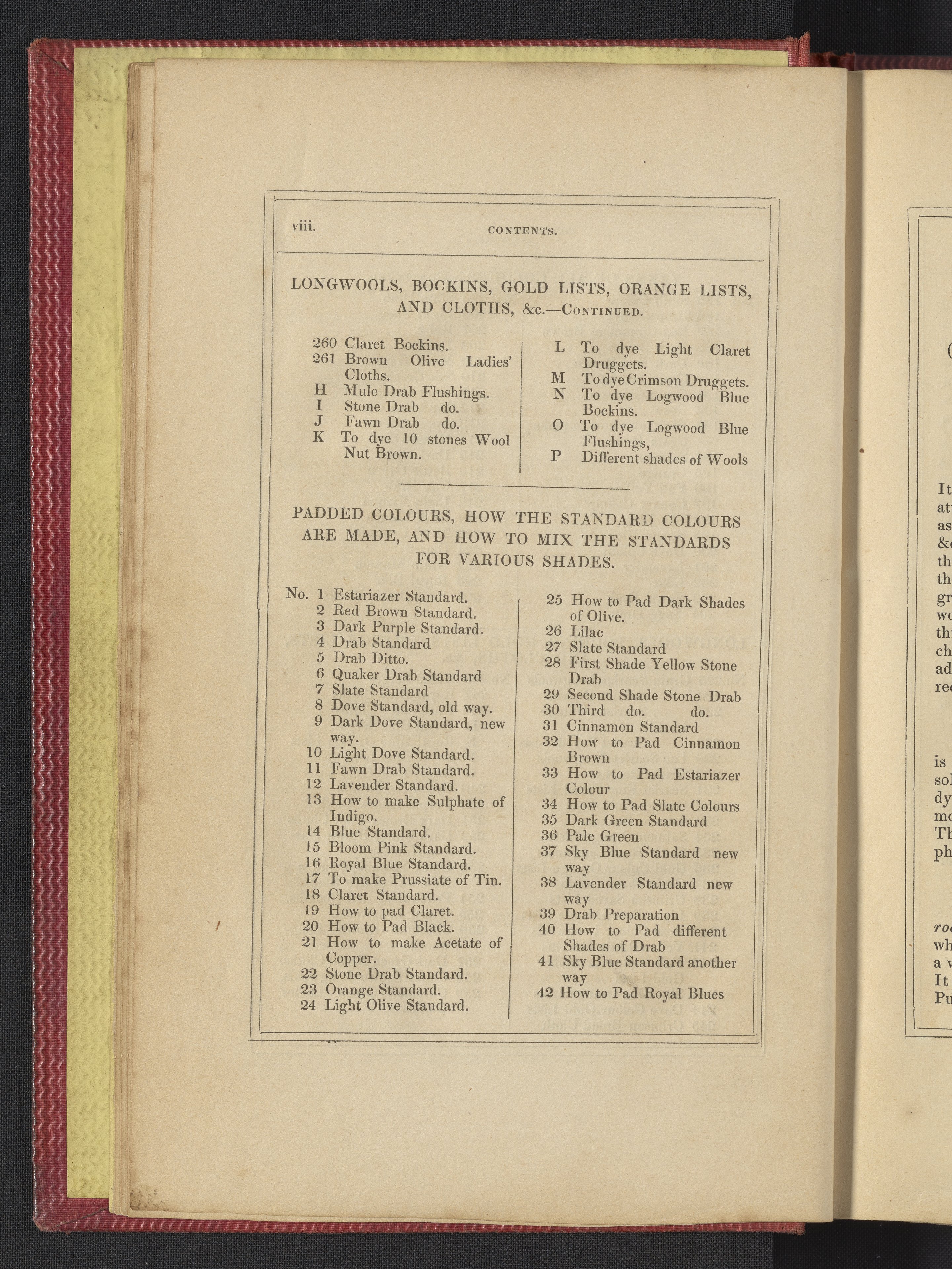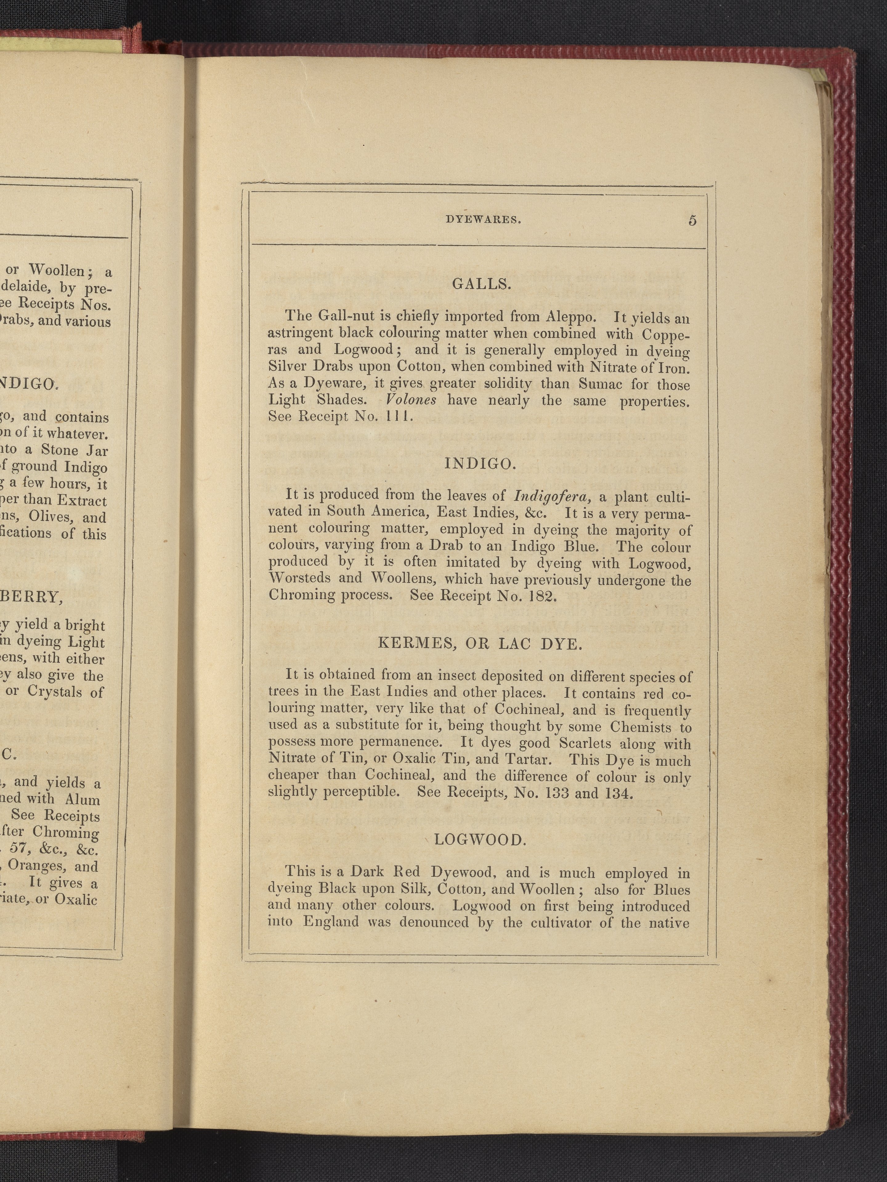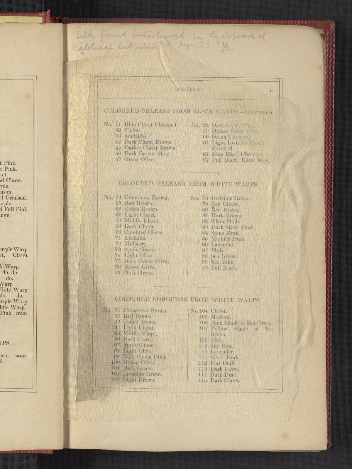 Small JPG1200 x 1735px — 633 KBLarge JPG2880 x 4164px — 3.1 MBFull-sized JPG3850 x 5566px — 5.1 MBOriginal fileTIFF — 3850 x 5566px — 61.4 MB"Comprising practical instructions in the dyeing of shot cobourgs, silk striped orleans, colored orleans from black warps, ditto from white warps, colored cobourgs from white warps, merinos, yarns, woollen cloths, &c.; containing nearly 300 receipts, to most of which a dyed pattern is annexed."