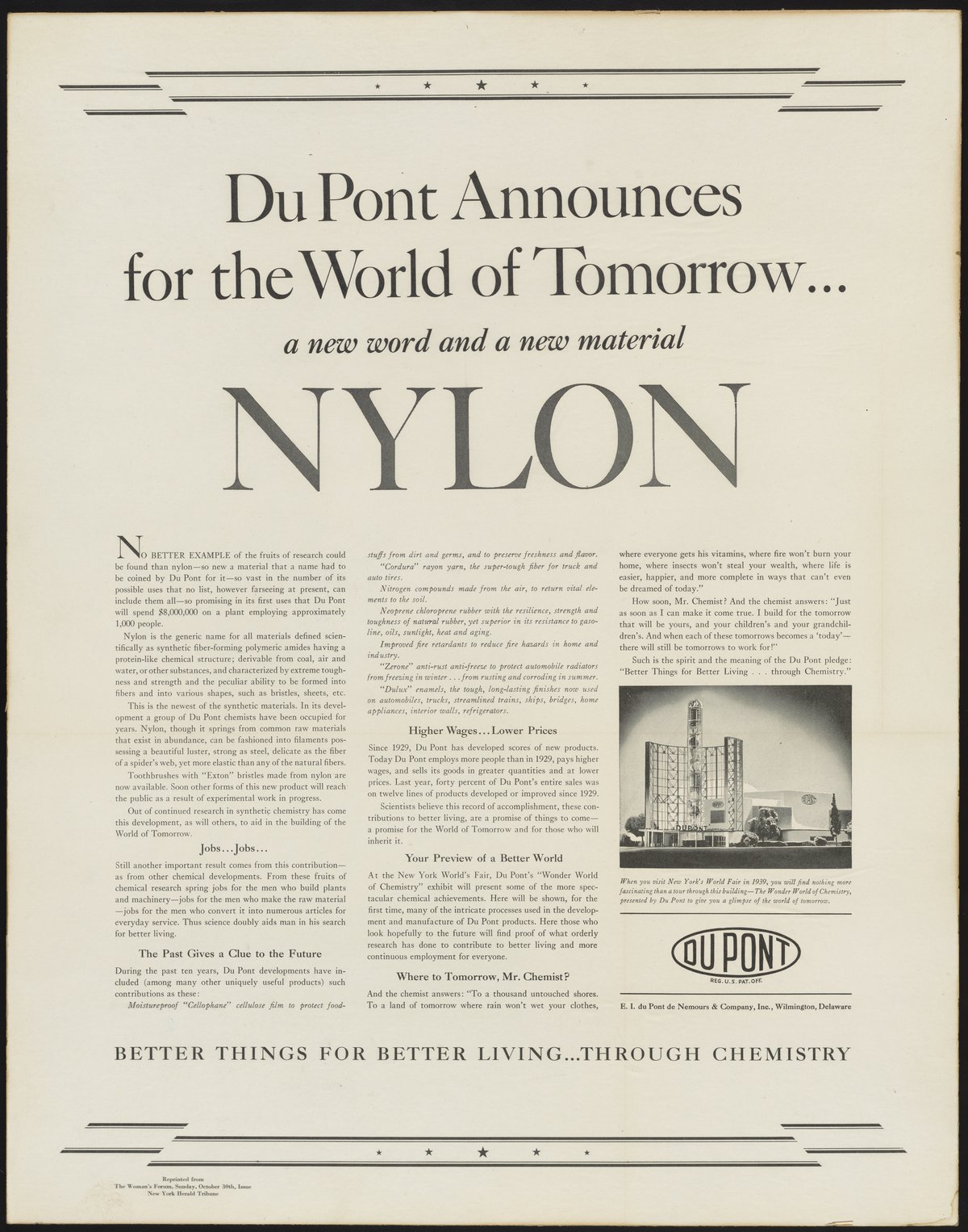 DuPont Announces for the World of Tomorrow... a new world and a new material NYLON