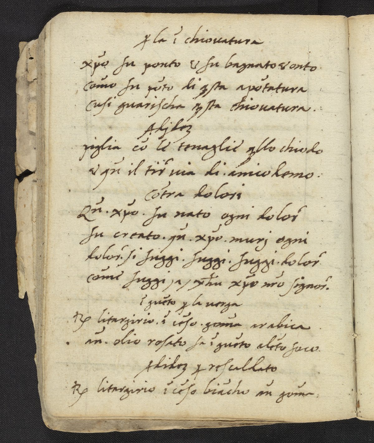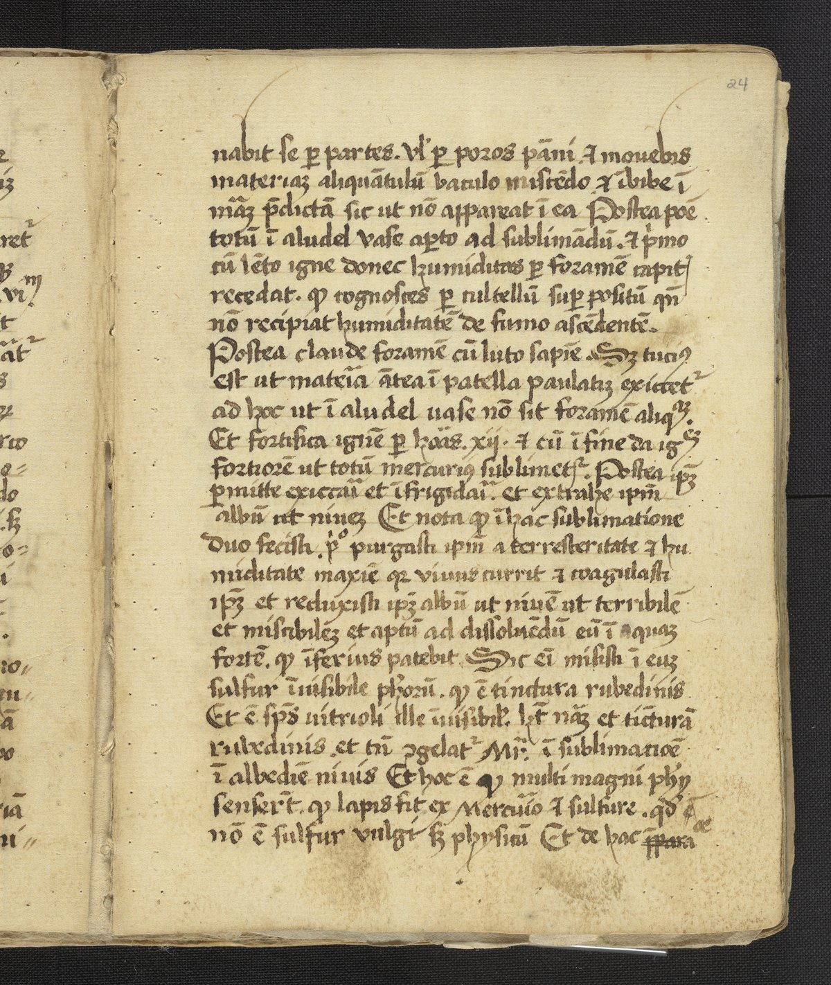 Small JPG1200 x 1422px — 372 KBLarge JPG2880 x 3413px — 1.9 MBFull-sized JPG3396 x 4024px — 2.5 MBOriginal fileTIFF — 3396 x 4024px — 39.2 MBFound in its original plain binding of parchment, this work was most likely compiled by a practitioner of alchemy and medicine. Containing a handwritten copy of Liber lucis by John of Rupescissa (Johannes de Rupescissa) which contains a recipe for the philosopher's stone. Also includes alchemical notes and extracts from Turba philosophorium by Giovanni Agostino Panteo, Voarchadumia contra alchimiam attributed to Pseudo-Geber (Jābir ibn Hayyān), Summa perfectionis magisterii, the redaction of Secretum secretorum by Roger Bacon, and Rosarium philosophorum ascribed to Arnold of Villanova.