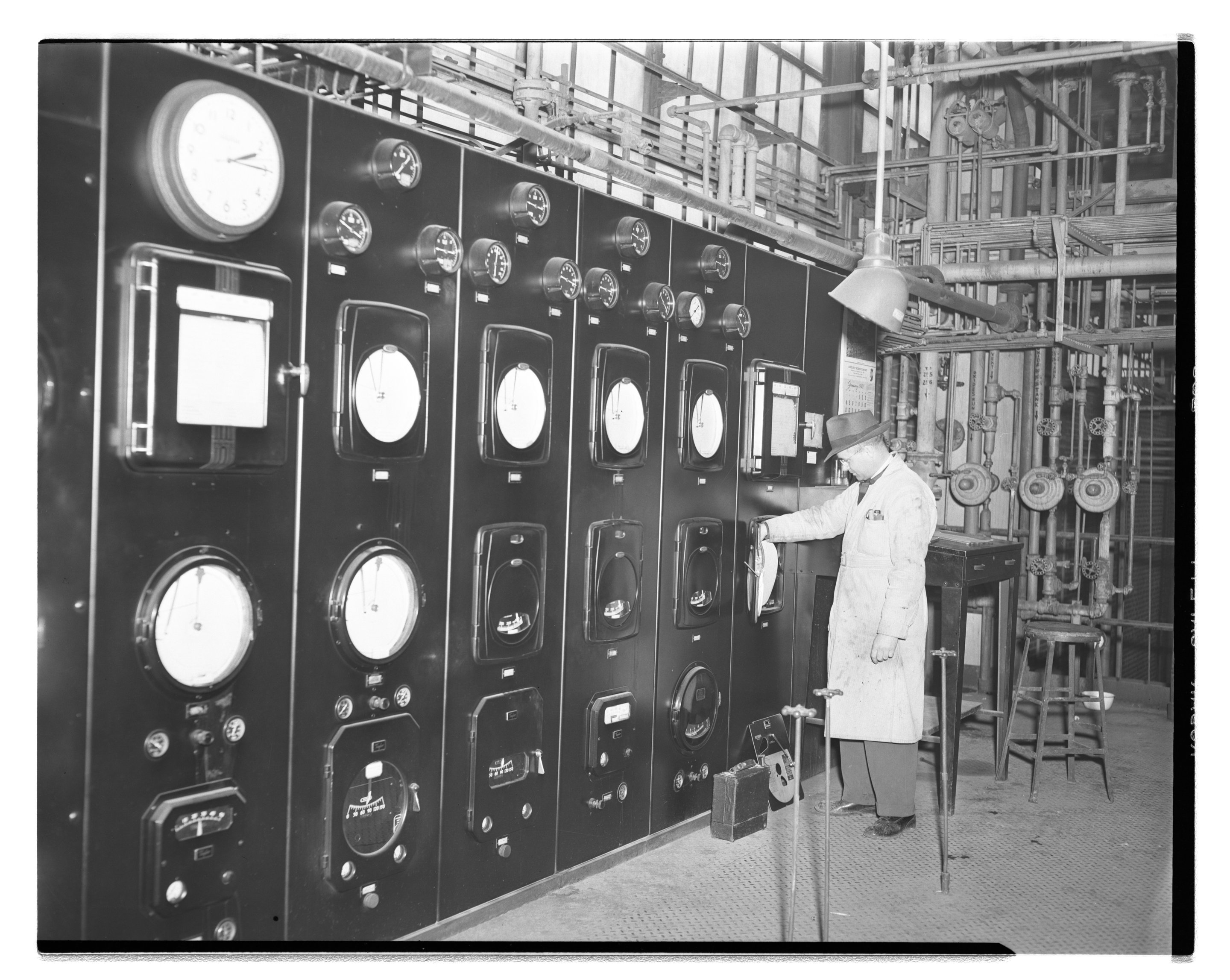 Dow Chemical Company. “Norris Hunemorden Servicing Control Panel at Dow Ethylene Glycol Plant,” February 24, 1948. Dow Chemical Company Historical Image Collection, Box 6, Folder Plants--Instrument Department. Science History Institute. Philadelphia. https://digital.sciencehistory.org/works/05741s22k.