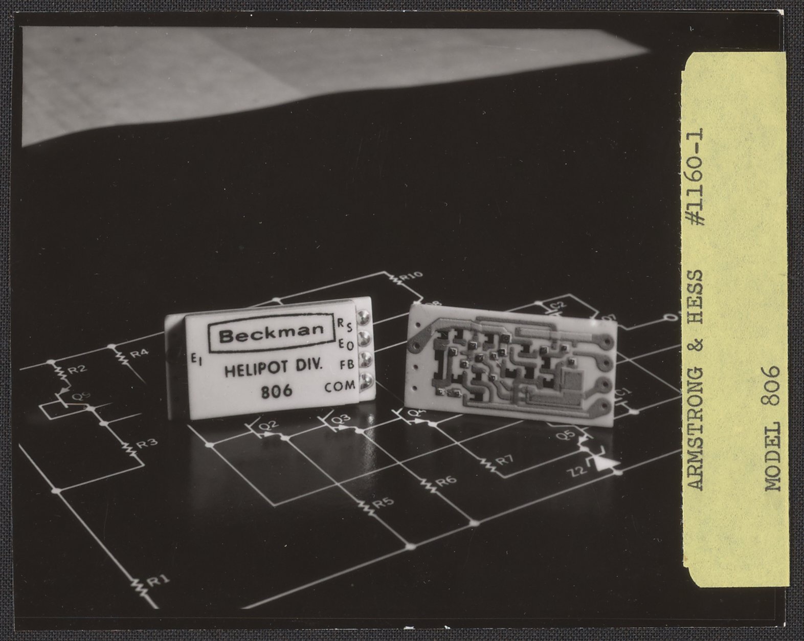 Armstrong & Hess. “Helipot Model 806 Voltage Regulator on a Circuit Diagram,” 1950–1969. Beckman Historical Collection, Box 85. Science History Institute. Philadelphia. https://digital.sciencehistory.org/works/08612n954.