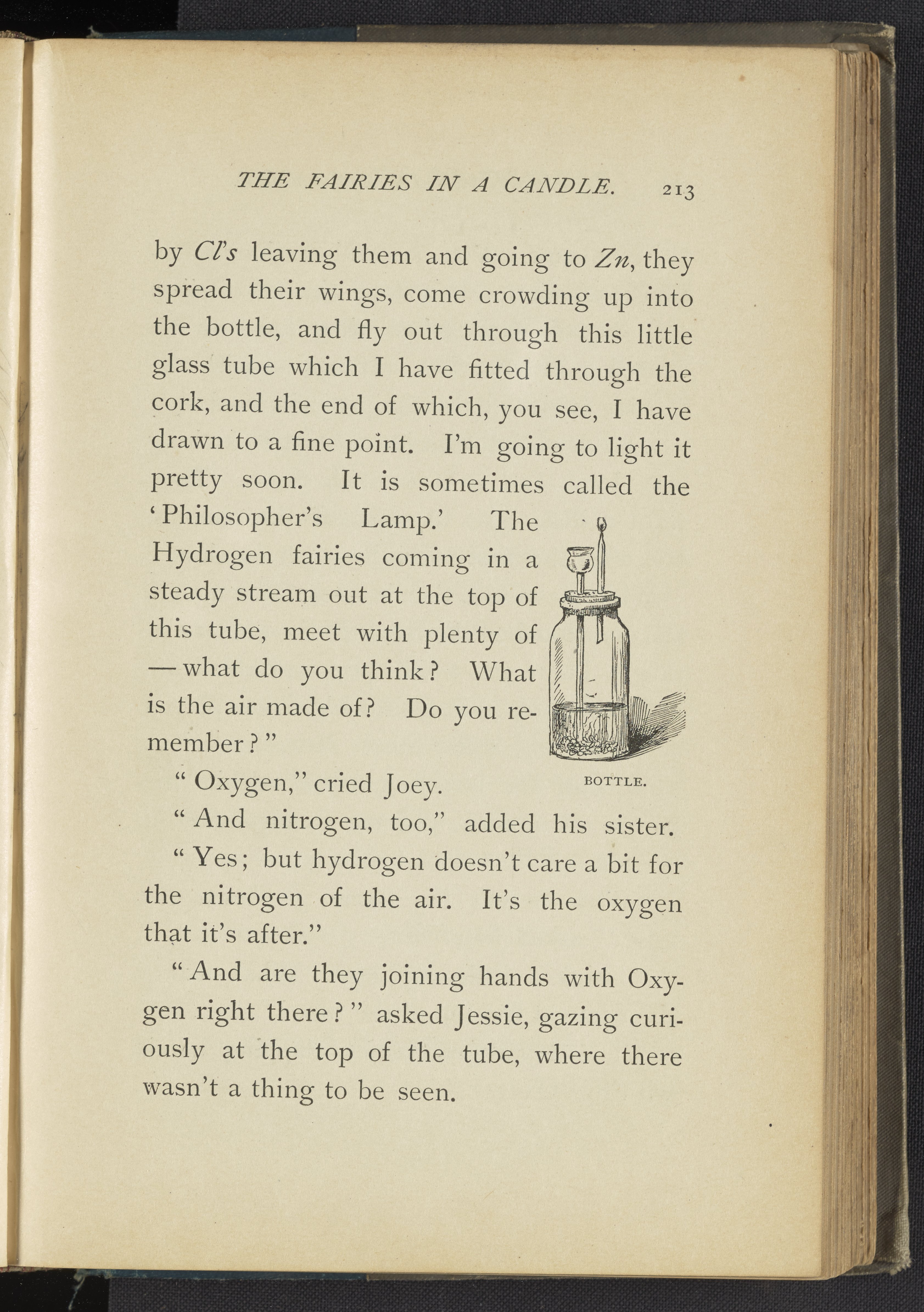 Meyer, Lucy Rider. “Bottle.” Real Fairy Folks, or, Fairy Land of Chemistry: Explorations in the World of Atoms. Boston, Massachusetts: Lothrop Publishing Company, 1887. https://digital.sciencehistory.org/works/08612p15d.