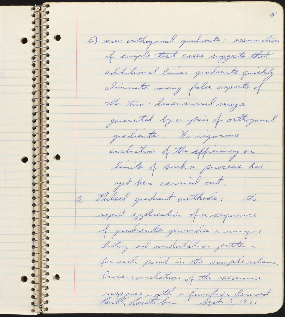 Lauterbur, Paul C. “Paul C. Lauterbur Notebook,” 1971. Box 1. Science History Institute. Philadelphia. https://digital.sciencehistory.org/works/0c483j46q.
