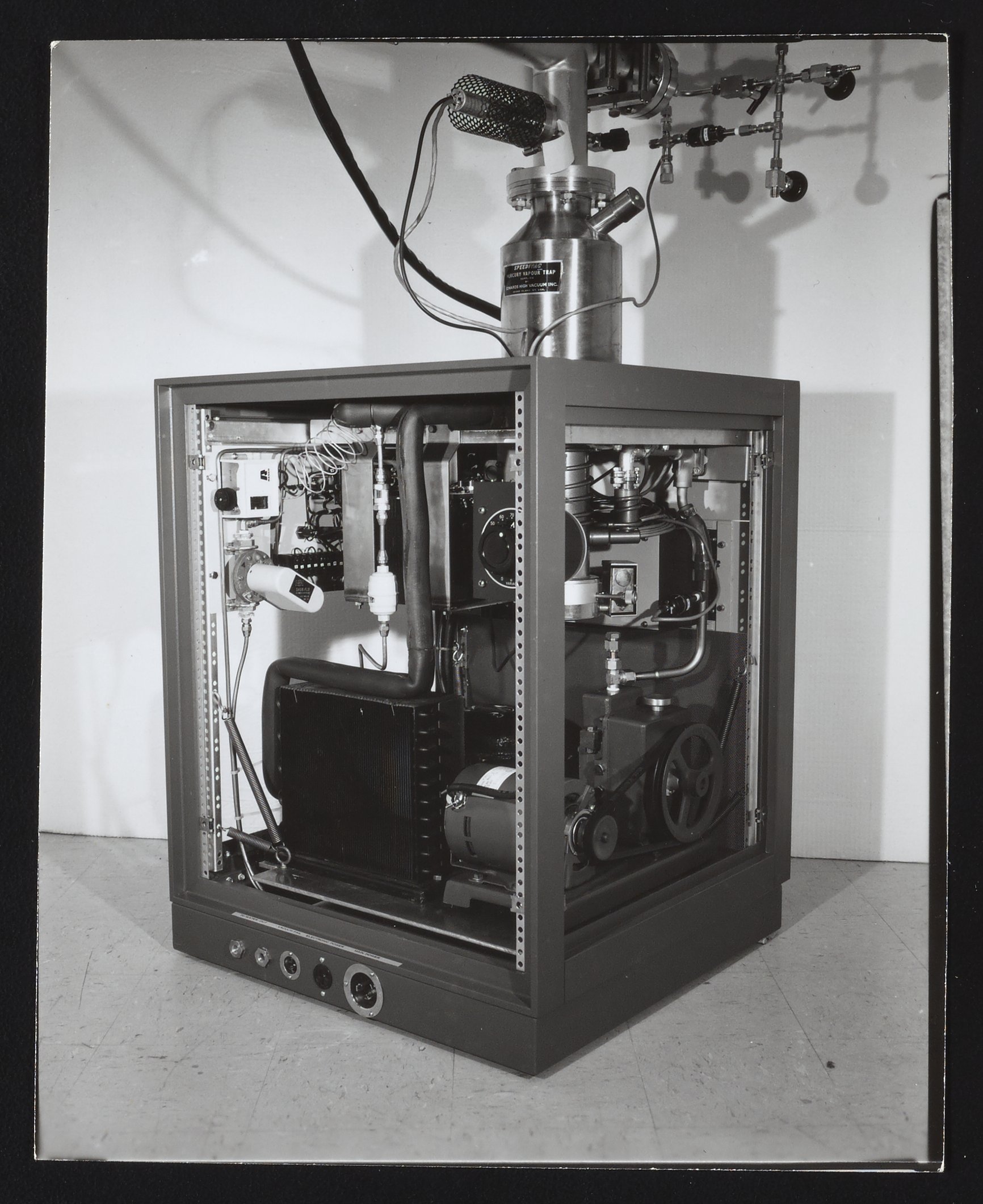 Small JPG1200 x 1528px — 260 KBFull-sized JPG1652 x 2104px — 437 KBOriginal fileTIFF — 1652 x 2104px — 10.0 MBTwo views of the interior of a component of a Bendix Time-of-Flight Mass Spectrometer system, with view assorted wires and gears. The Time-of-Flight Mass Spectrometer (TOFMS) was the flagship analytical instrument of the Bendix Corporation.