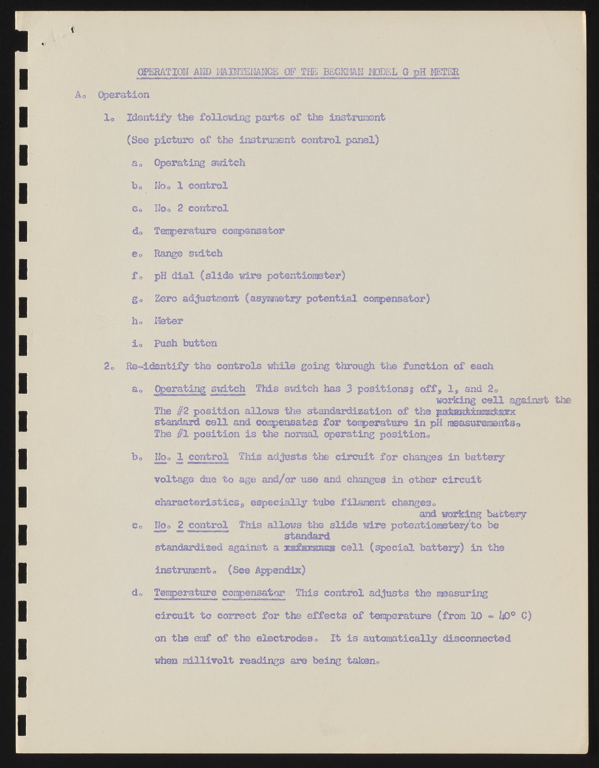 Operation and maintenance of the Beckman model G pH meter