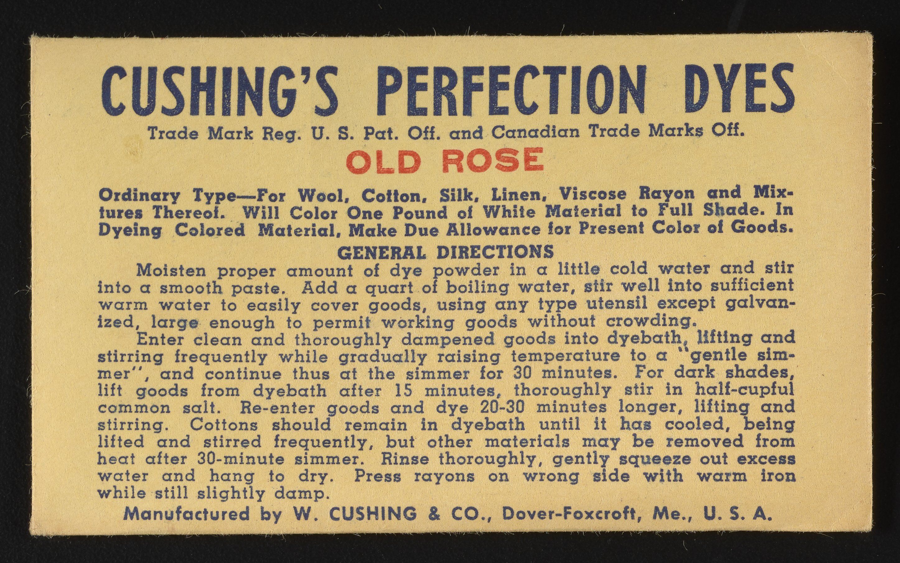 “Cushing's Perfection Dyes Set.” Paper (fiber product), n.d. Science History Institute. Philadelphia. https://digital.sciencehistory.org/works/0r9673780.