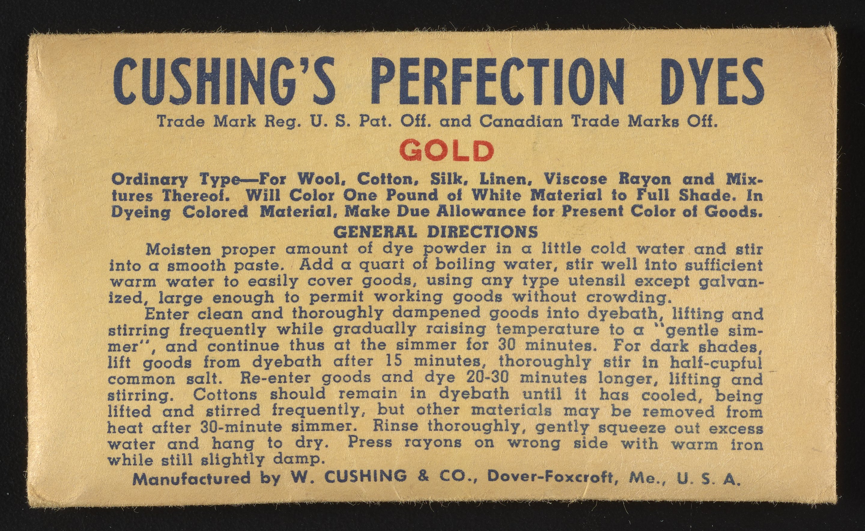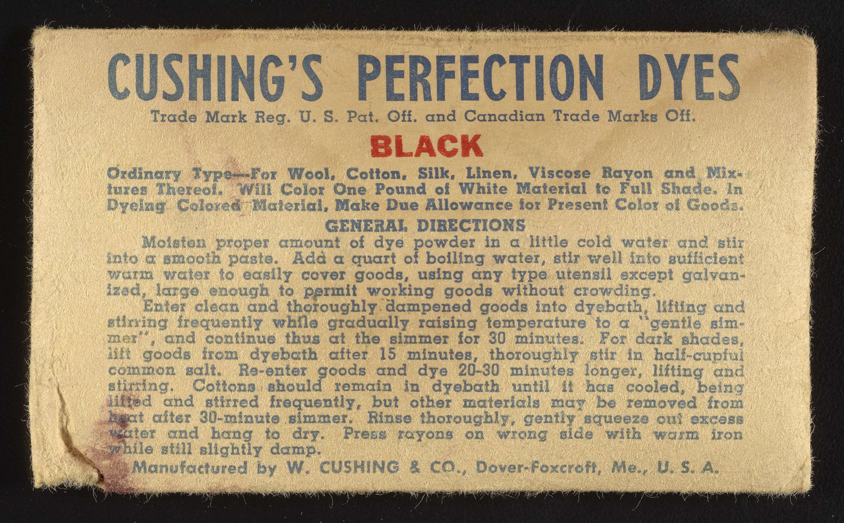 “Cushing's Perfection Dyes Set.” Paper (fiber product), n.d. Science History Institute. Philadelphia. https://digital.sciencehistory.org/works/0r9673780.