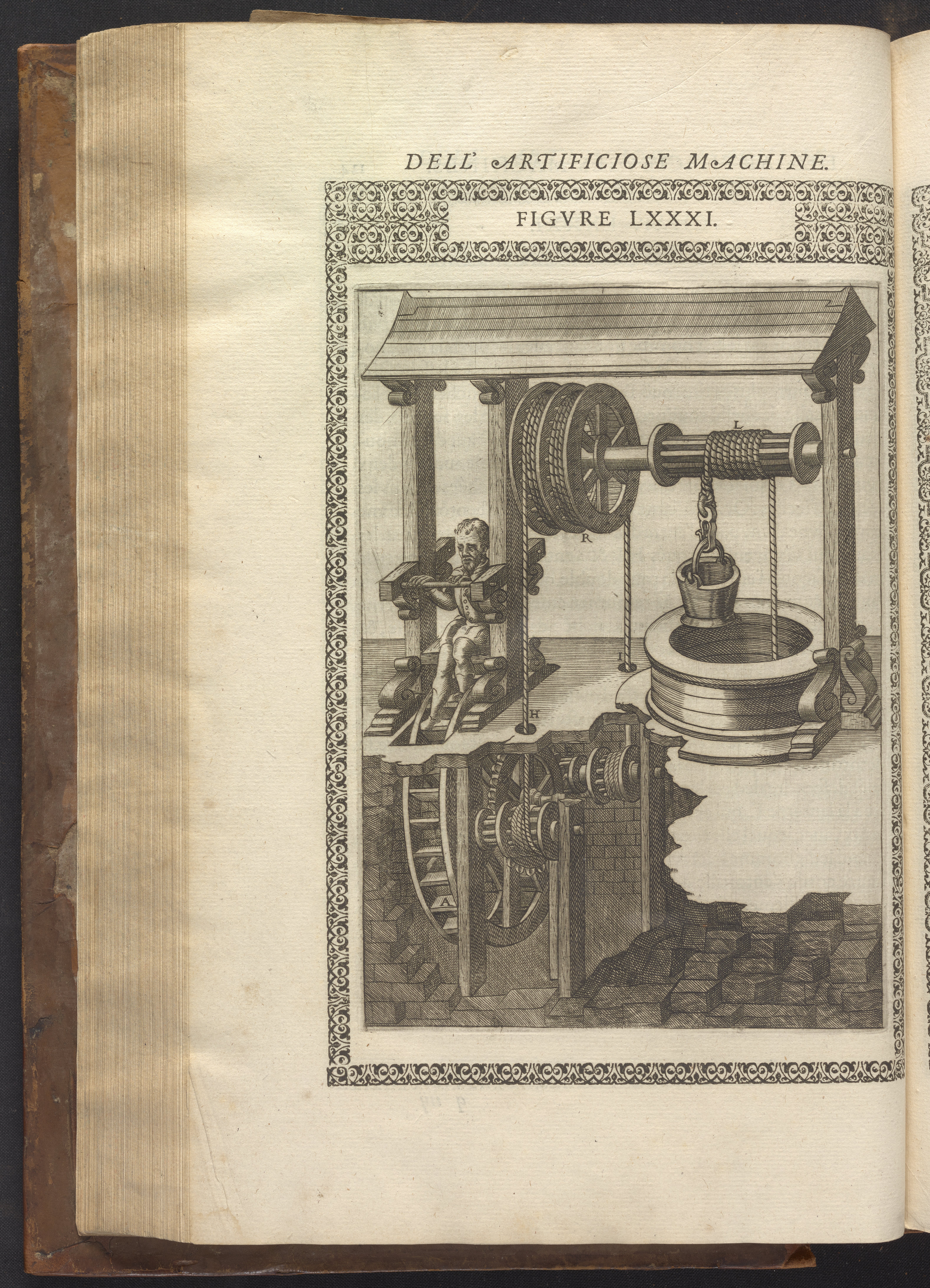 Ramelli, Agostino. “Plate 81: Single-Person-Operated Device for Drawing Water from a Very Deep Well.” In Le Diverse Et Artificiose Machine Del Capitano Agostino Ramelli. Paris, France, 1588. https://digital.sciencehistory.org/works/0r9674009.