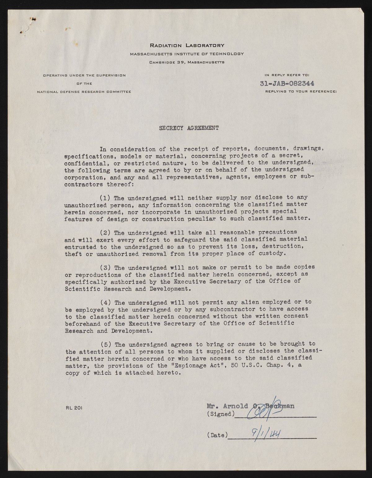 Secrecy Agreement
