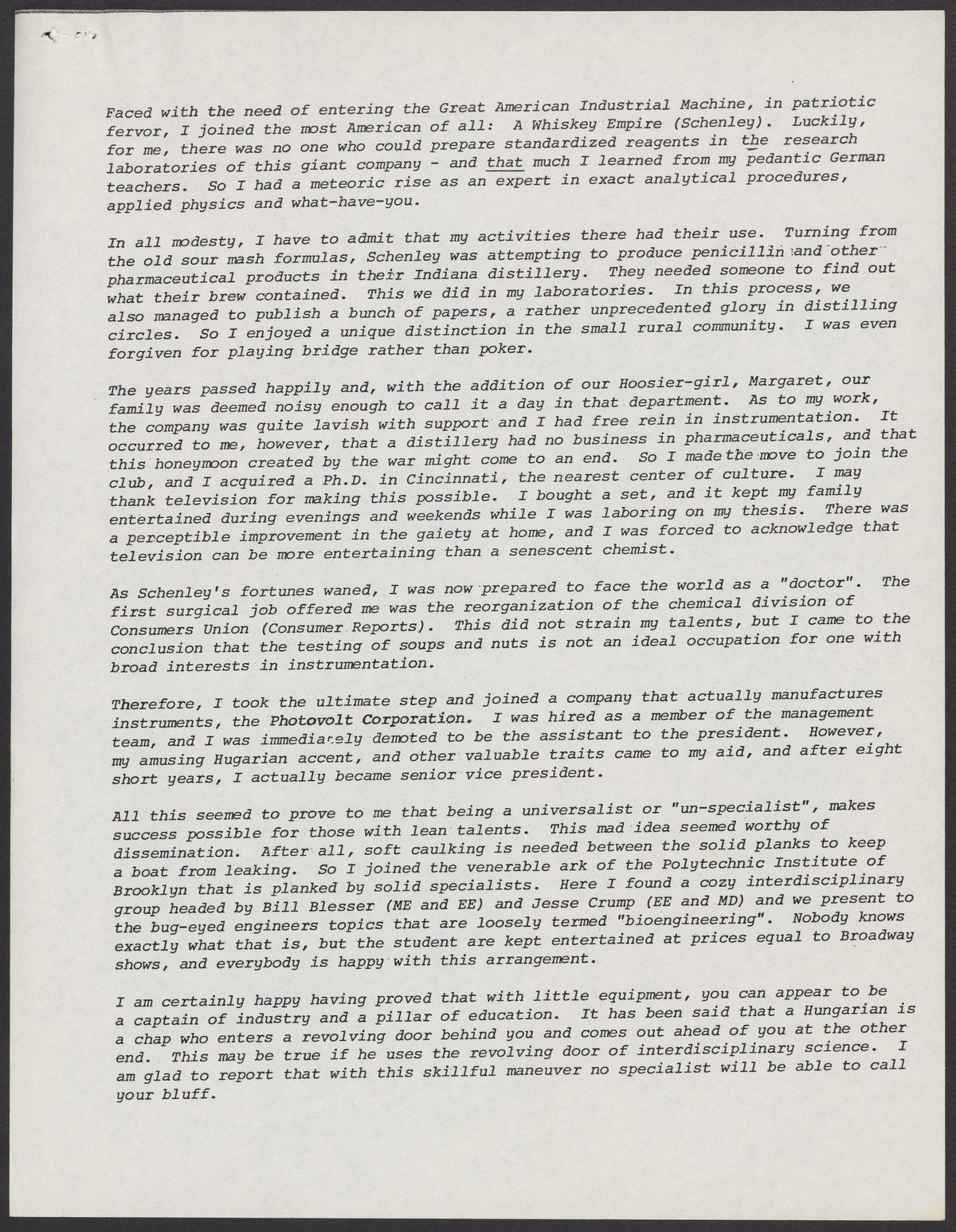 Levy, Gabor B. “Biography of a Hungarian Hoosier, or, How to Succeed With Practically Nothing,” circa 1980. Papers of Gabor B. Levy, Box 1, Folder 2. Science History Institute. Philadelphia. https://digital.sciencehistory.org/works/10veii8.