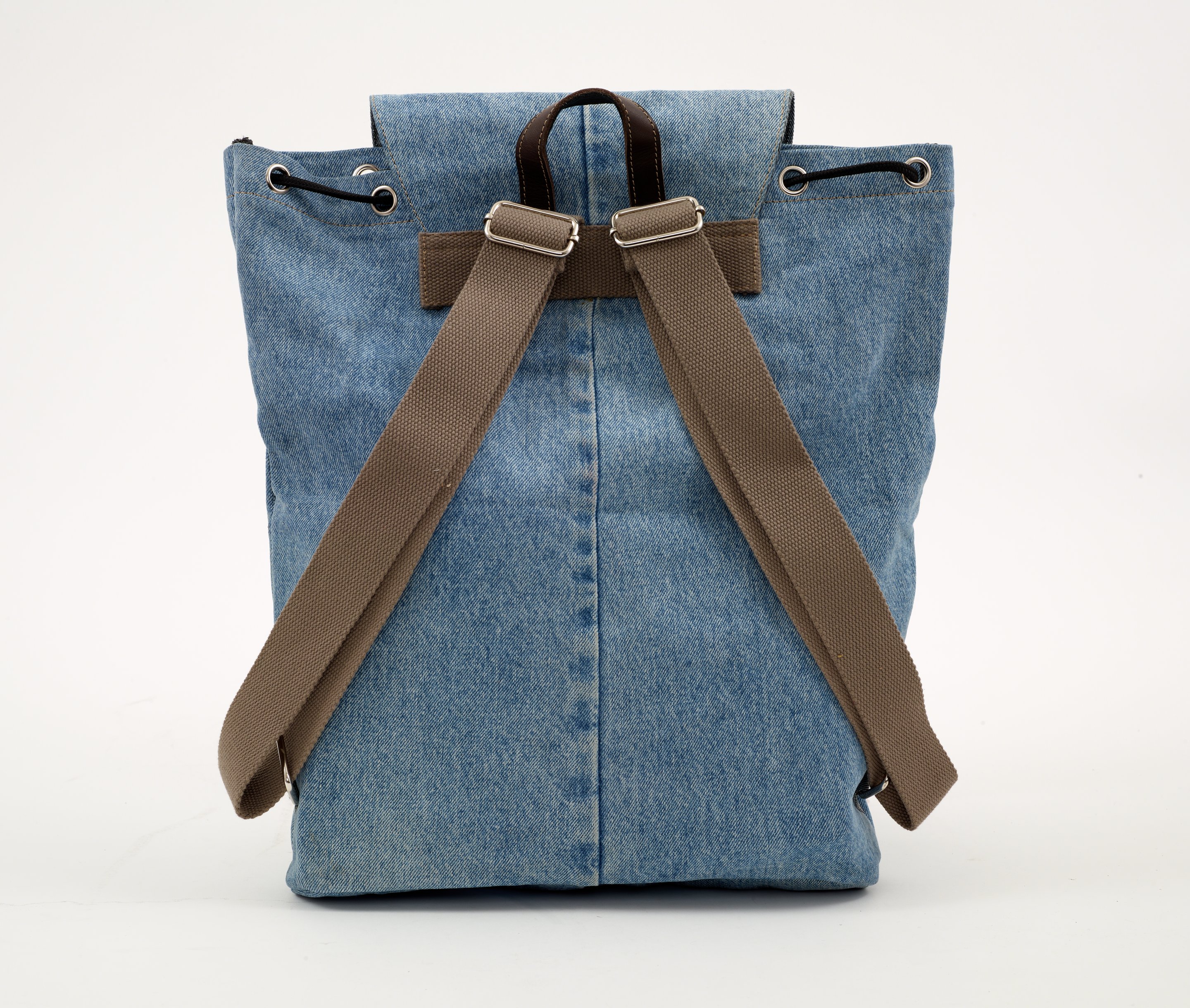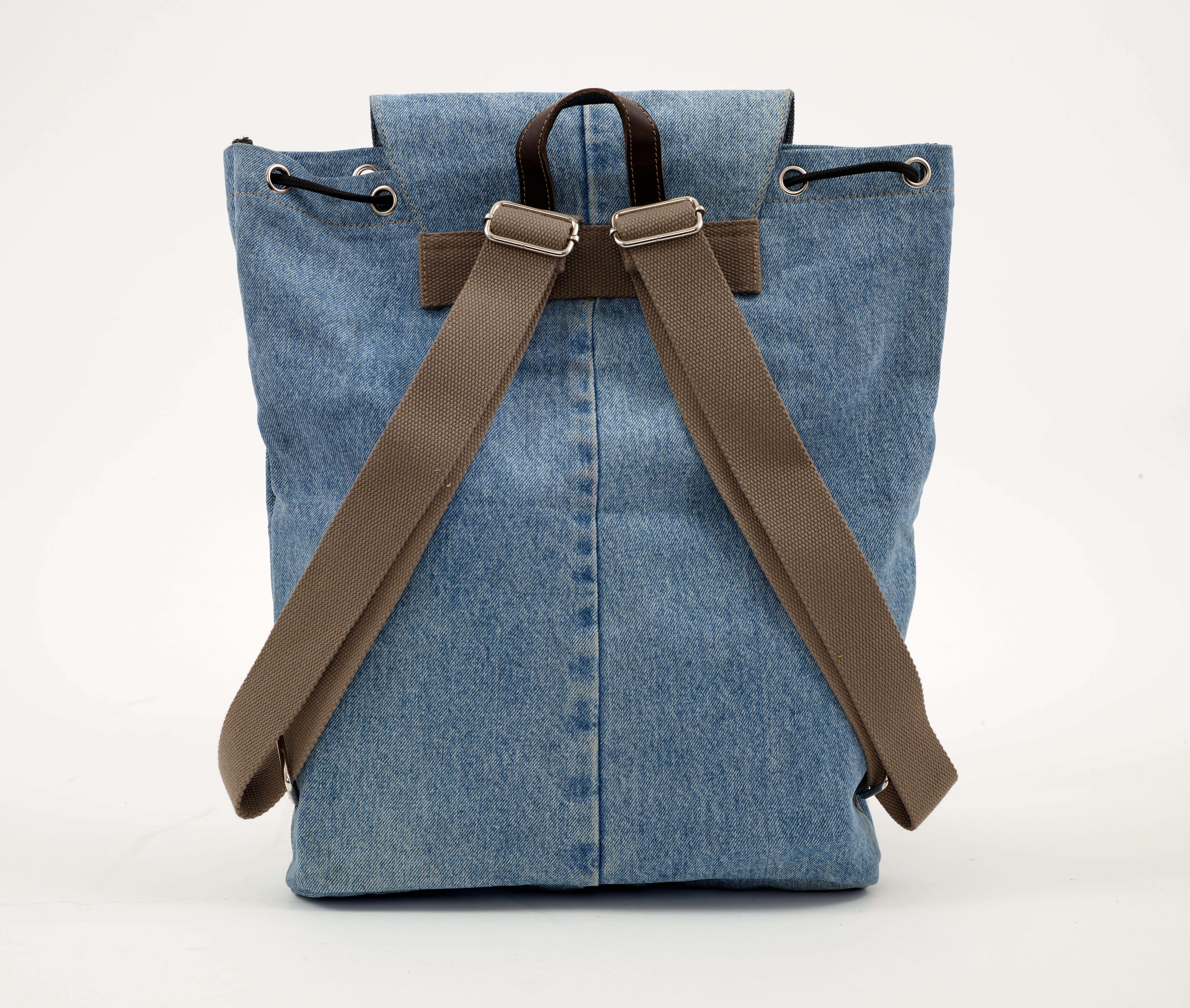 Small JPG1200 x 1017px — 194 KBLarge JPG2880 x 2440px — 1.2 MBFull-sized JPG7868 x 6665px — 6.8 MBOriginal fileTIFF — 7868 x 6665px — 150 MBA backpack constructed from light blue wash denim fabric. The bag is "upcycled" from denim pants picked from Gikomba, the largest second-hand market in Kenya. Includes a bright pink dust cover made from an upcycled pillowcase.