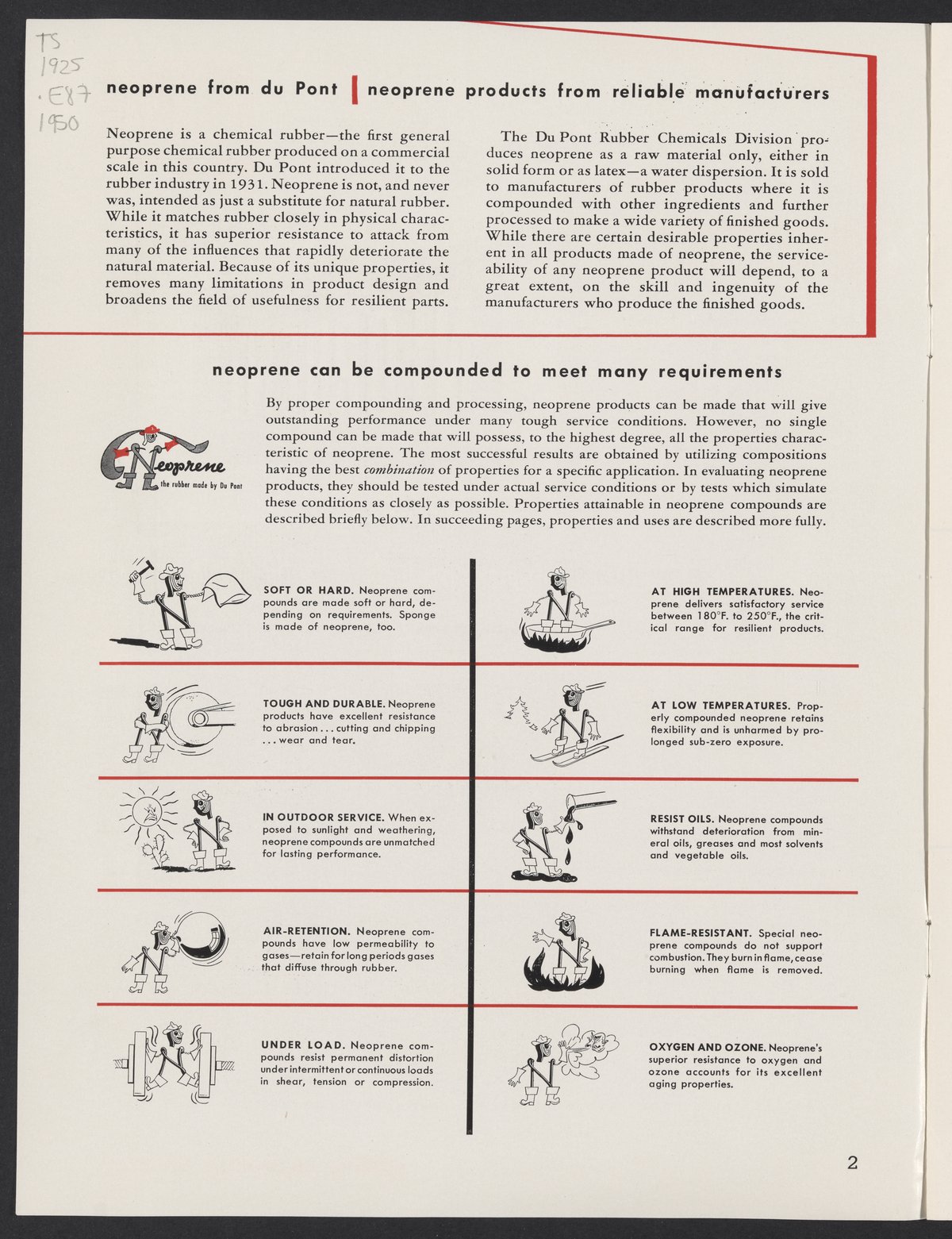 E.I. du Pont de Nemours & Company. Rubber Chemicals Division. “Design for Success with Neoprene, The Versatile Chemical Rubber,” 1950. TS1925 .E87 1950. Science History Institute. Philadelphia. https://digital.sciencehistory.org/works/15ls2d9.