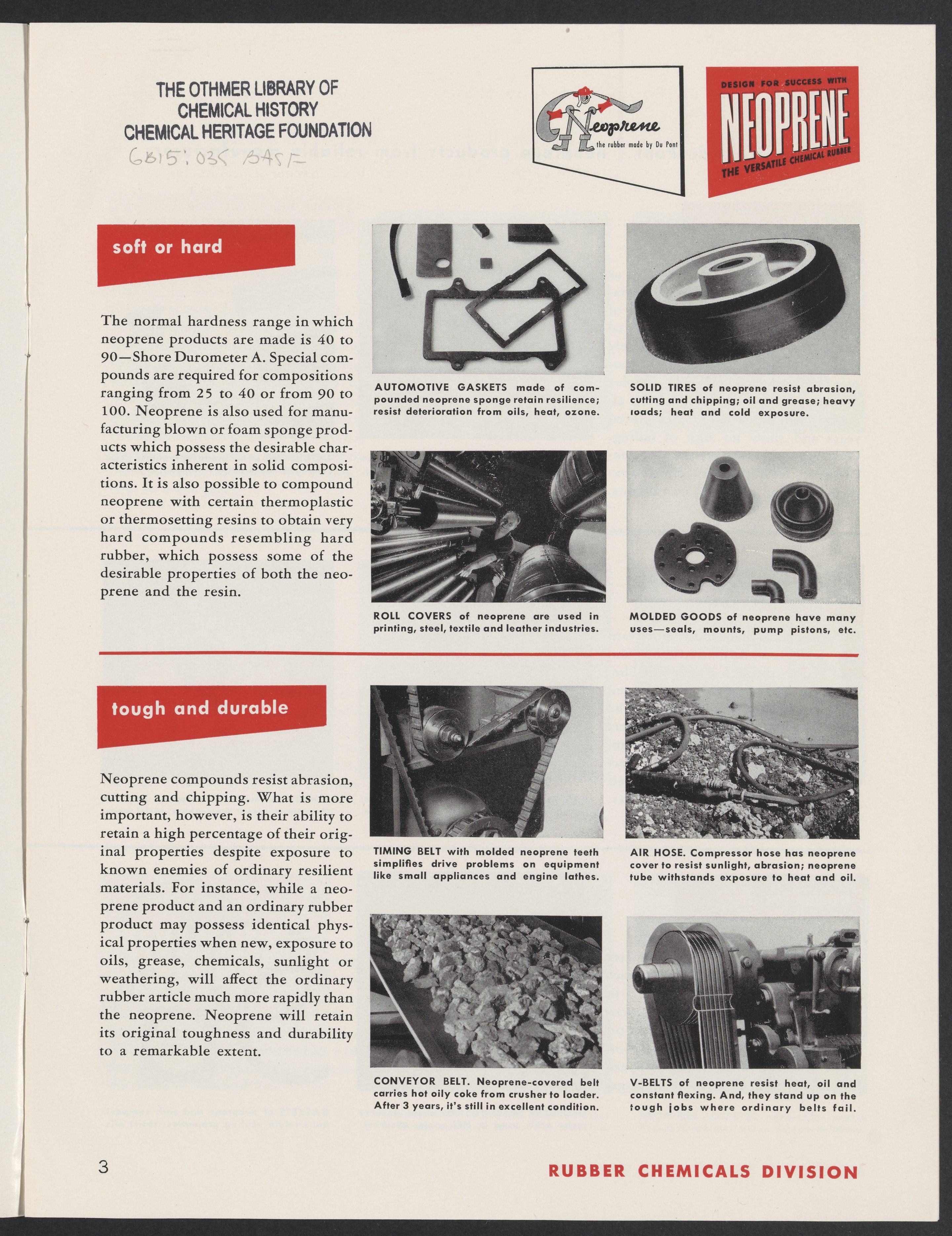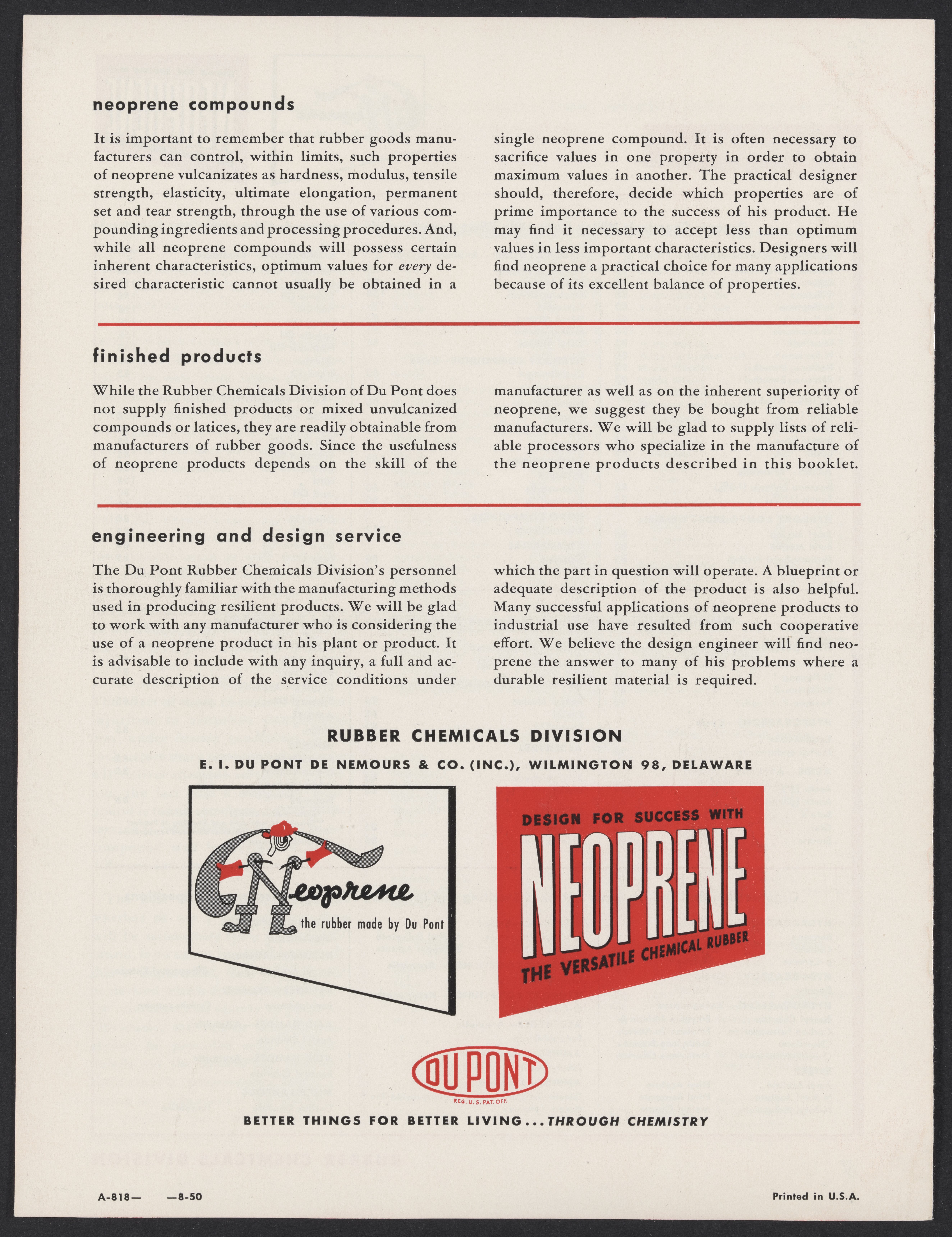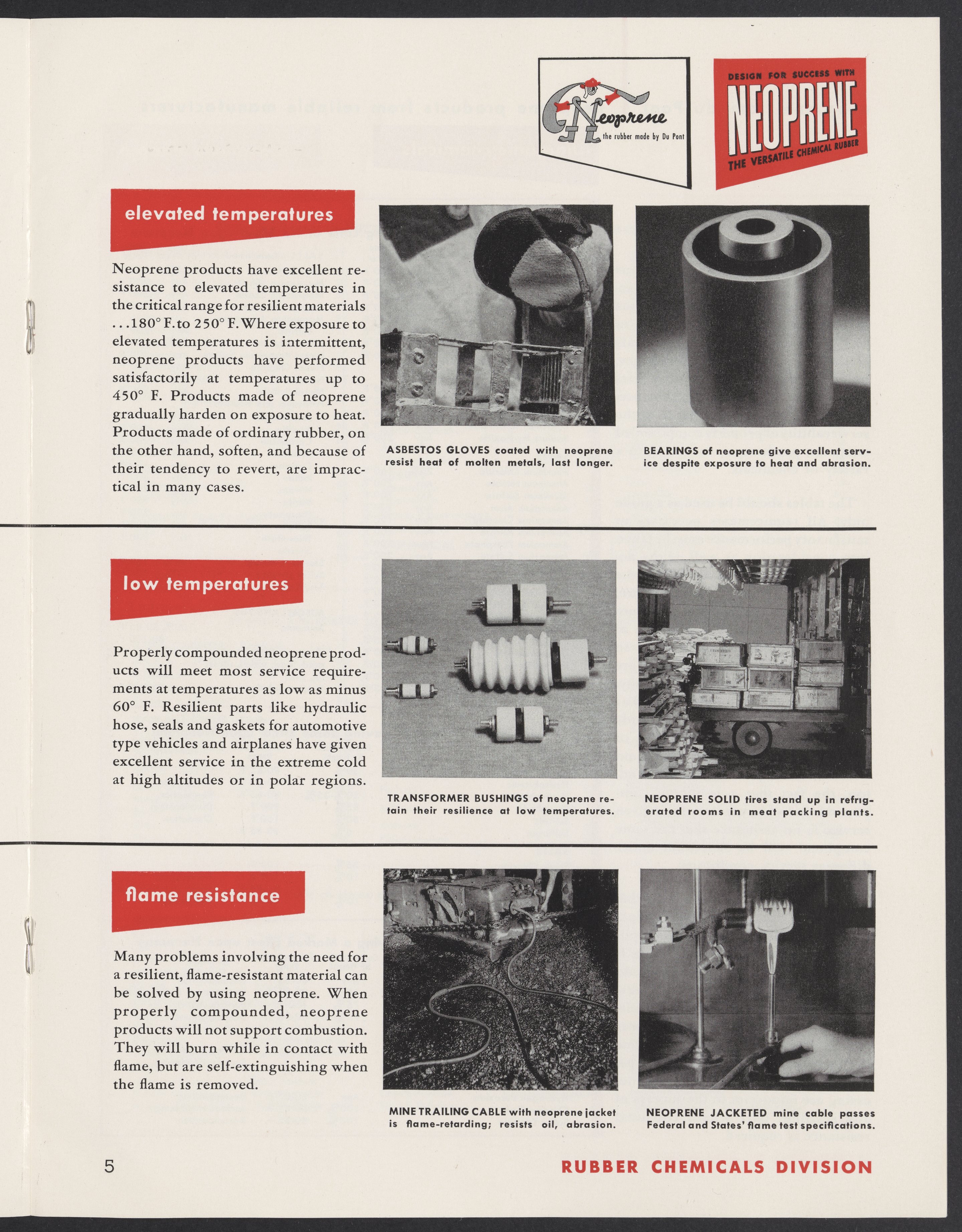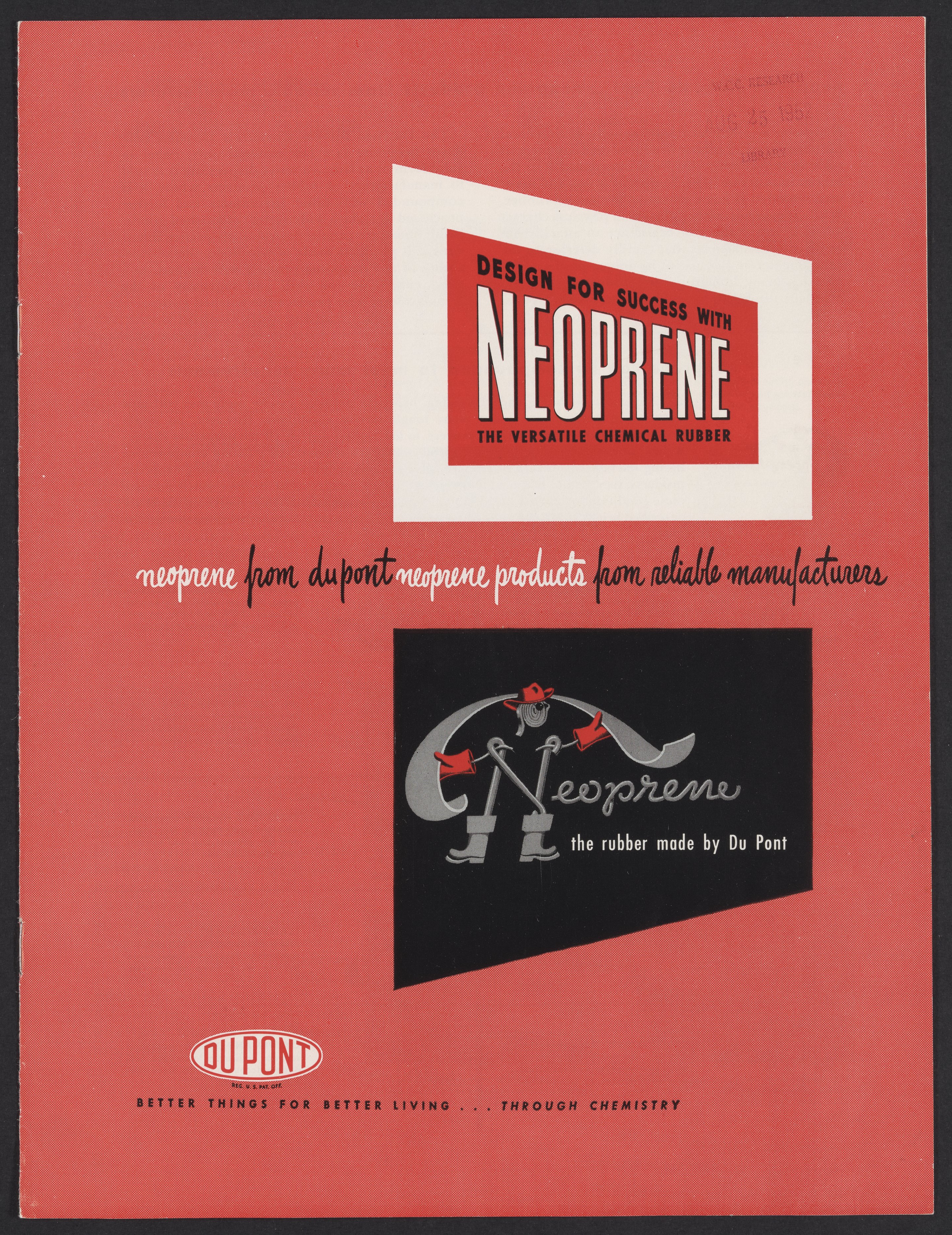 E.I. du Pont de Nemours & Company. Rubber Chemicals Division. “Design for Success with Neoprene, The Versatile Chemical Rubber,” 1950. TS1925 .E87 1950. Science History Institute. Philadelphia. https://digital.sciencehistory.org/works/15ls2d9.