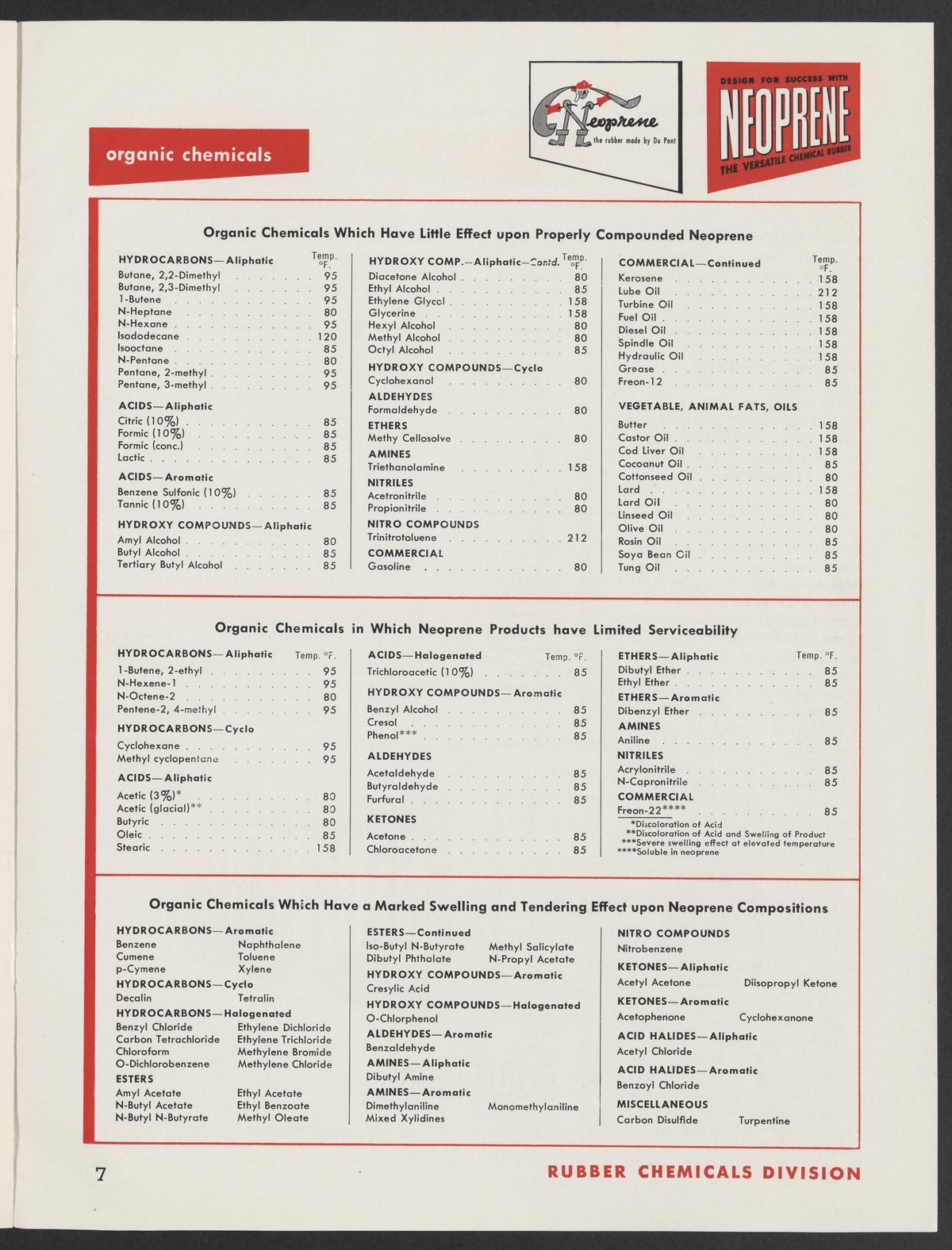 Small JPG1200 x 1556px — 487 KBLarge JPG2880 x 3734px — 3.5 MBFull-sized JPG5318 x 6895px — 10.5 MBOriginal fileTIFF — 5318 x 6895px — 105 MBThis publication, published in 1950 by the Rubber Chemicals Divison of E.I. du Pont de Nemours & Company, illustrates the properties and uses of Neoprene.