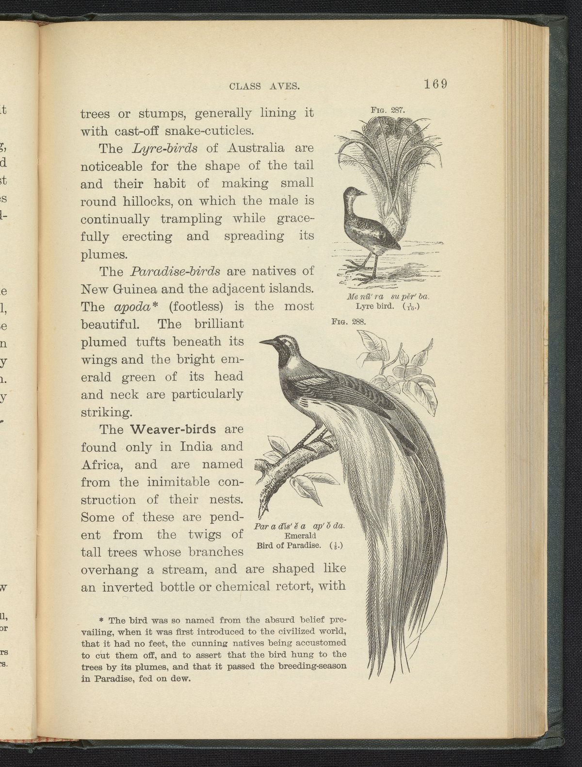 Steele, Joel Dorman, and Jenks, J. W. P. (John Whipple Potter). “Figure 287. Lyre Bird. Figure 288. Emerald Bird of Paradise.” Popular Zoology. New York, New York: Chautauqua Press, 1887. https://digital.sciencehistory.org/works/15mi694.