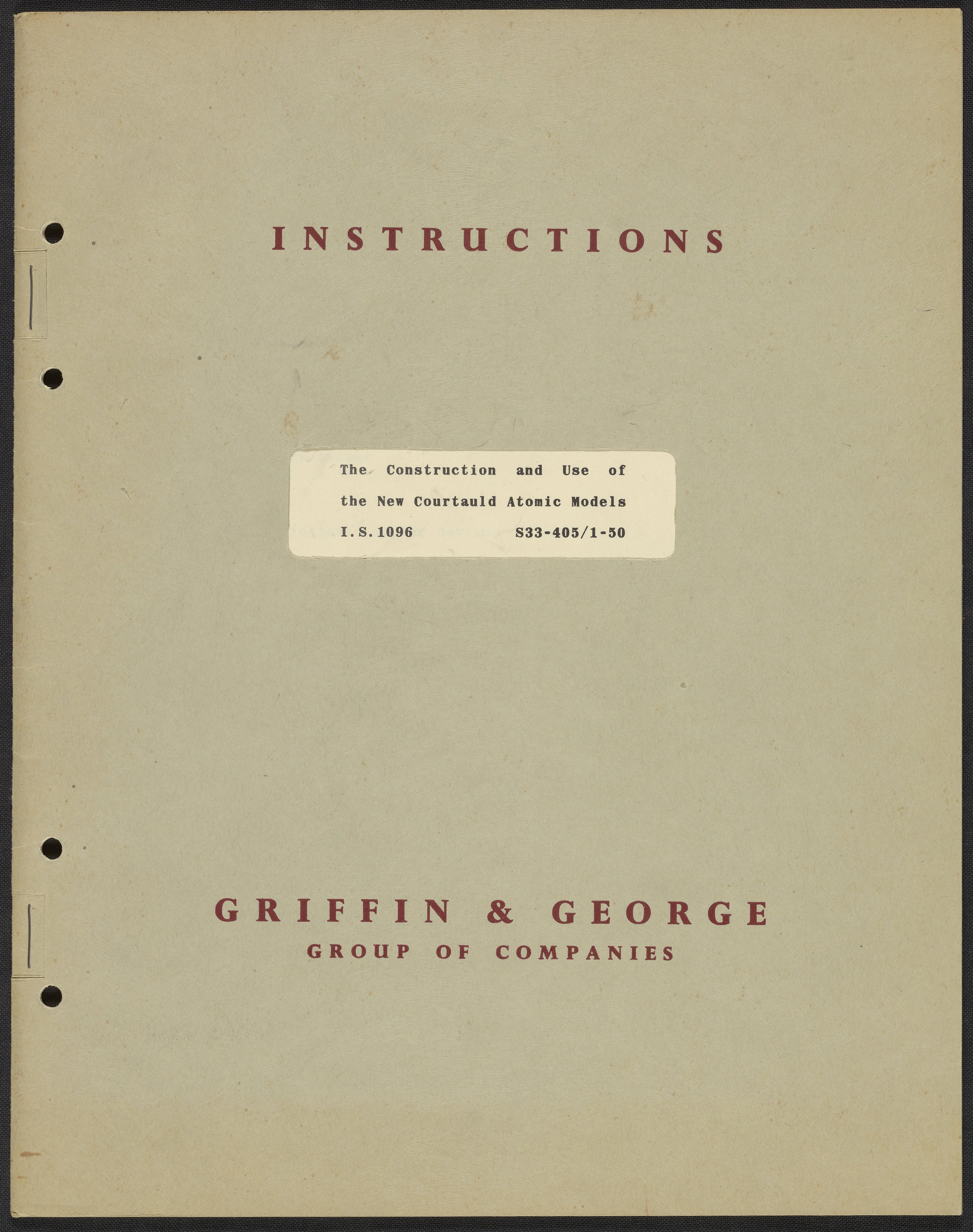 Small JPG1200 x 1519px — 209 KBLarge JPG2880 x 3646px — 1.8 MBFull-sized JPG5370 x 6798px — 6.5 MBOriginal fileTIFF — 5370 x 6798px — 105 MBInstruction manual for the Courtauld Atomic Model Kit.