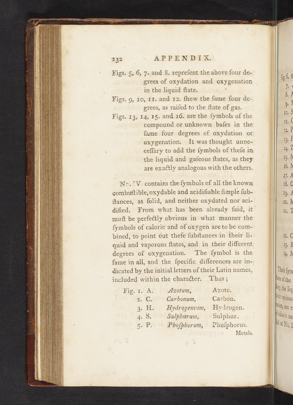 This edition included so many additions that it was necessary to divide it into two volumes. The appendix and addenda (pp. 226–255) contain the majority of the new material, including the first English translation of a paper by Jean Henri Hassenfratz (1755-1827) and Pierre-Auguste Adet (1763-1834), New System of Chemical Characters, adapted to the New Nomenclature, by Messrs Hassenfratz and Adet: with some Alterations by the Translator. Plate XIV illustrates the chemical symbols created by Hassenfratz and Adet. The addenda contain details on the newly discovered element columbium (i.e., niobium), carbon monoxide, nitrous oxide, and lactic acid, taken from A System of Chemistry (Edinburgh, 1802) by Thomas Thomson (1773-1852). Digitized content includes the work's appendix and plate XIV.