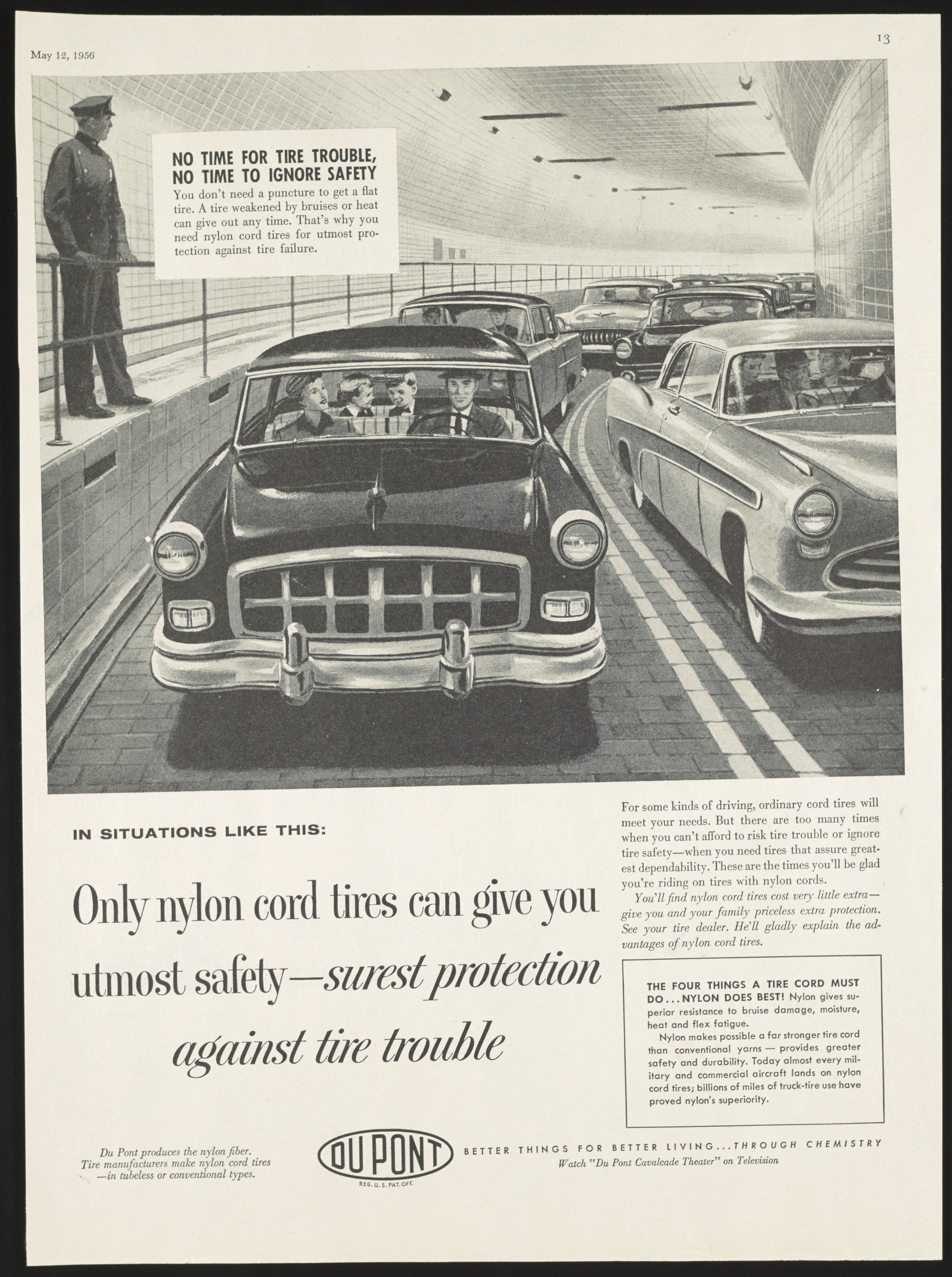 “Only Nylon Cord Tires Can Give You Utmost Safety—Surest Protection against Tire Trouble,” 1956. Science History Institute. Philadelphia. https://digital.sciencehistory.org/works/1c18df984.