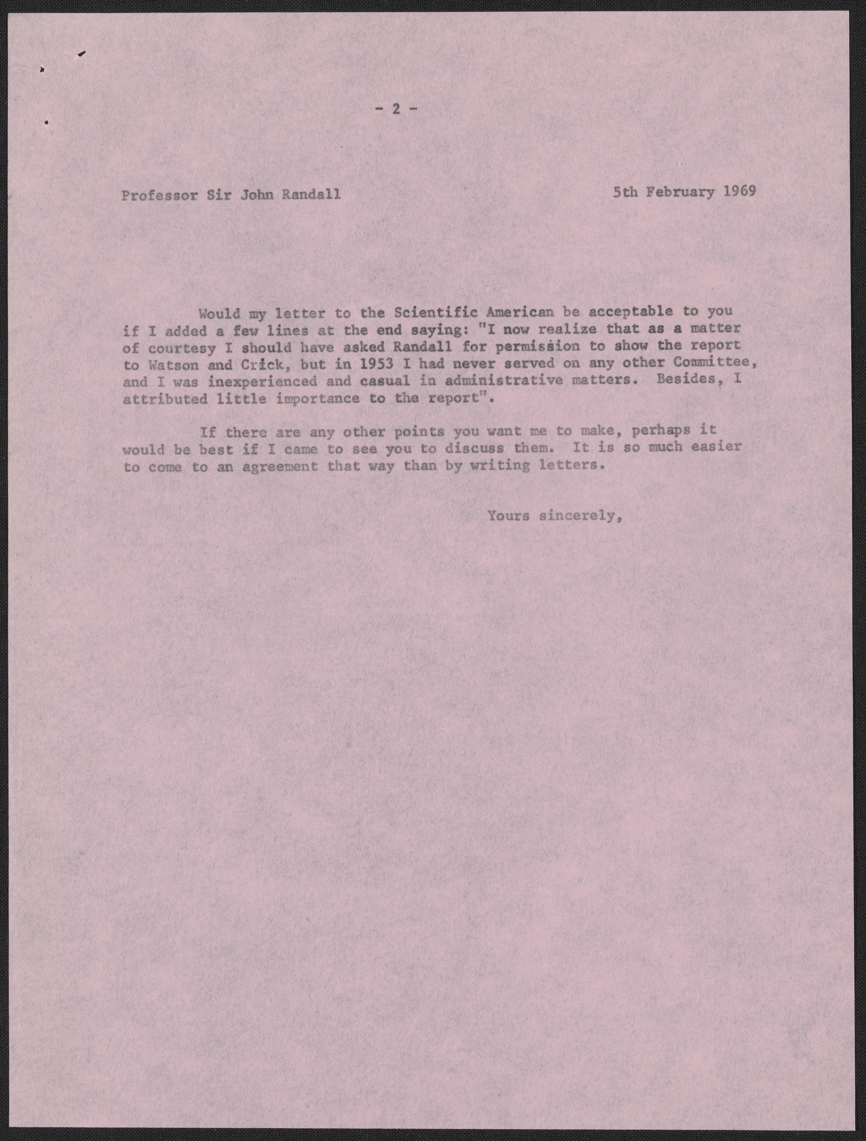 Perutz, Max F. “Letter from Max Perutz to John Randall, February 5, 1969,” February 5, 1969. History of Molecular Biology Collection, Box 88, Folder 3. Science History Institute. Philadelphia. https://digital.sciencehistory.org/works/1fru8hf.