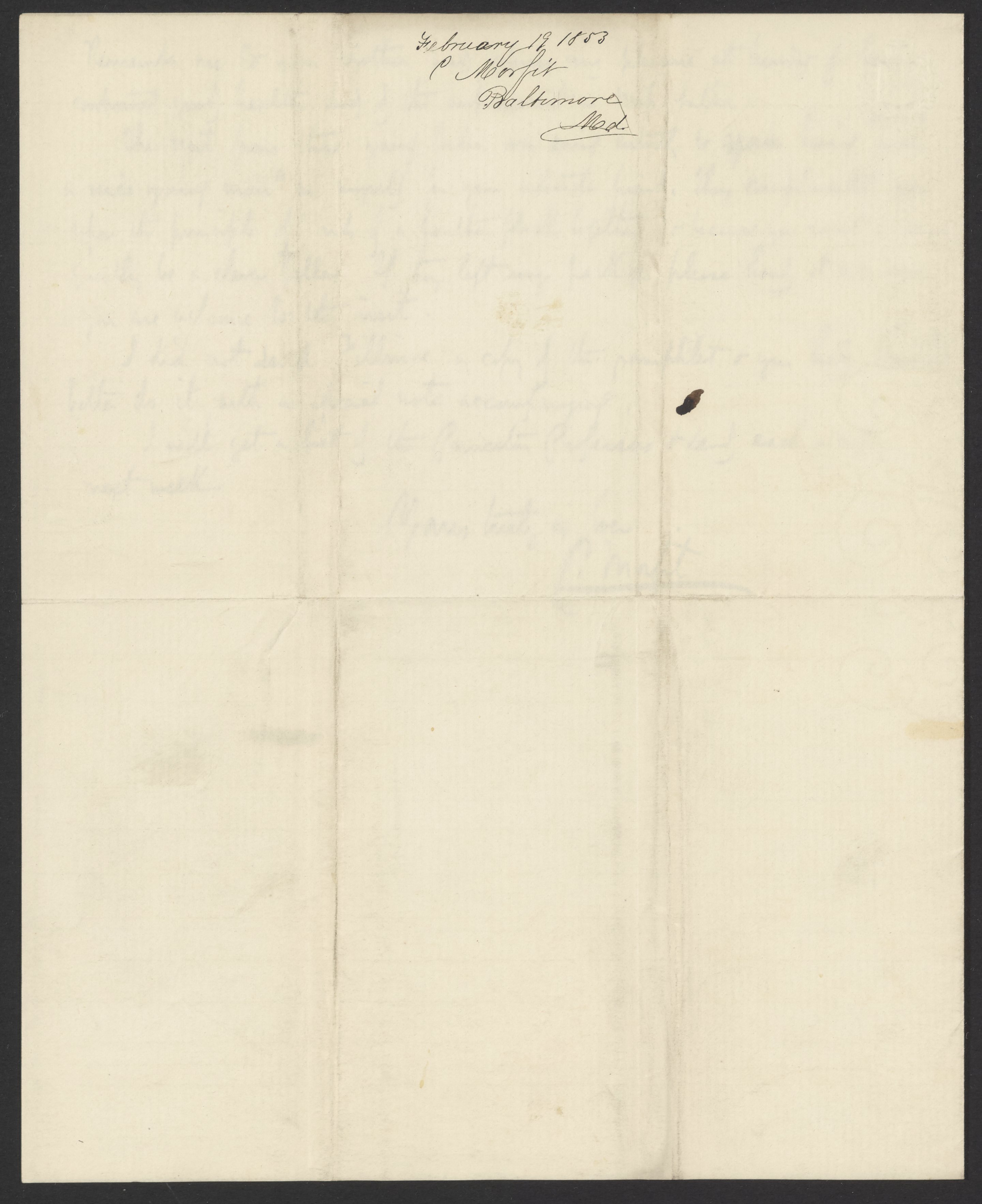 Letter from Campbell Morfit to James Curtis Booth, February 19, 1853