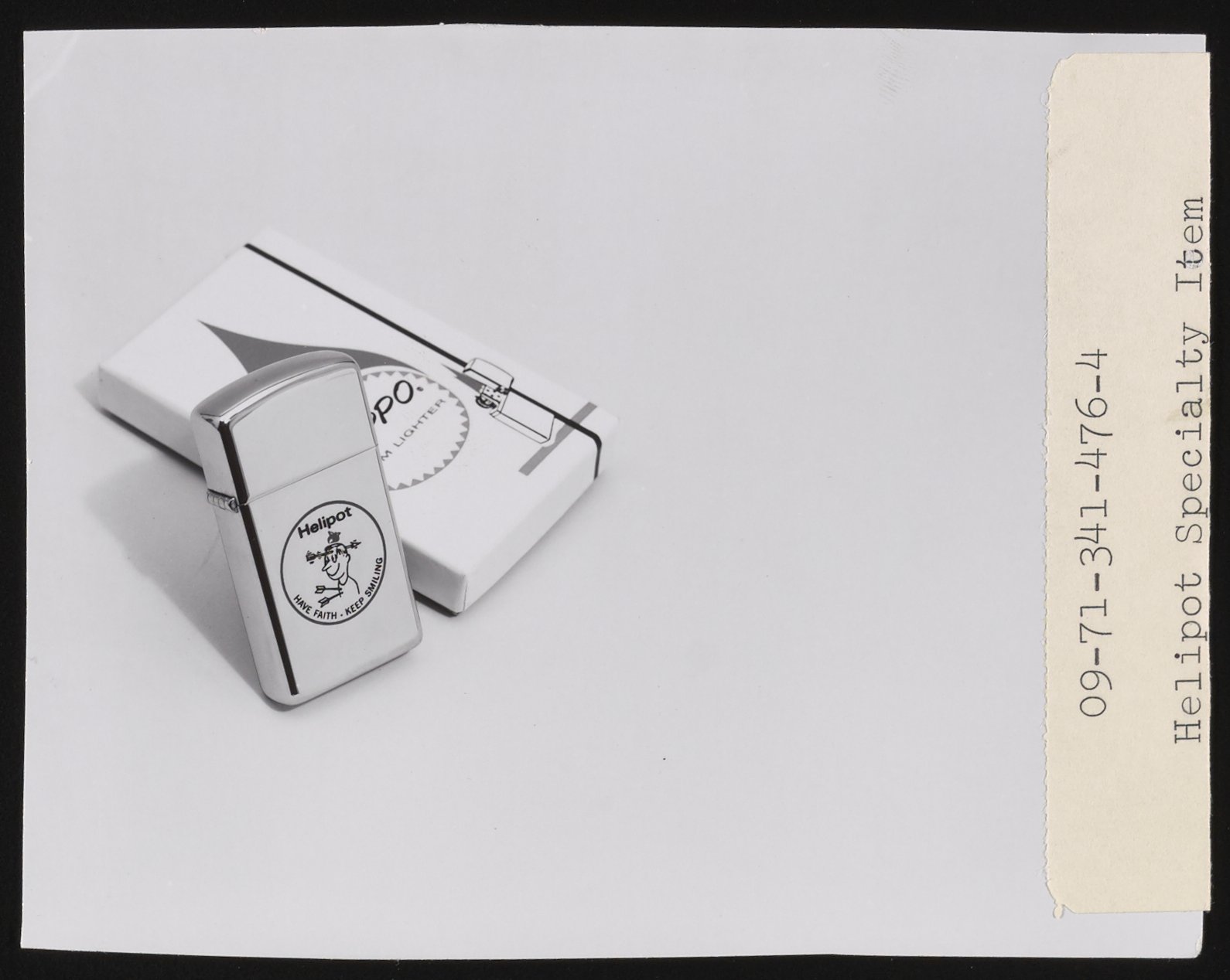 Beckman Instruments, Inc. “Helipot Zippo Lighter,” 1960–1969. Beckman Historical Collection, Box 86. Science History Institute. Philadelphia. https://digital.sciencehistory.org/works/1g05fb620.