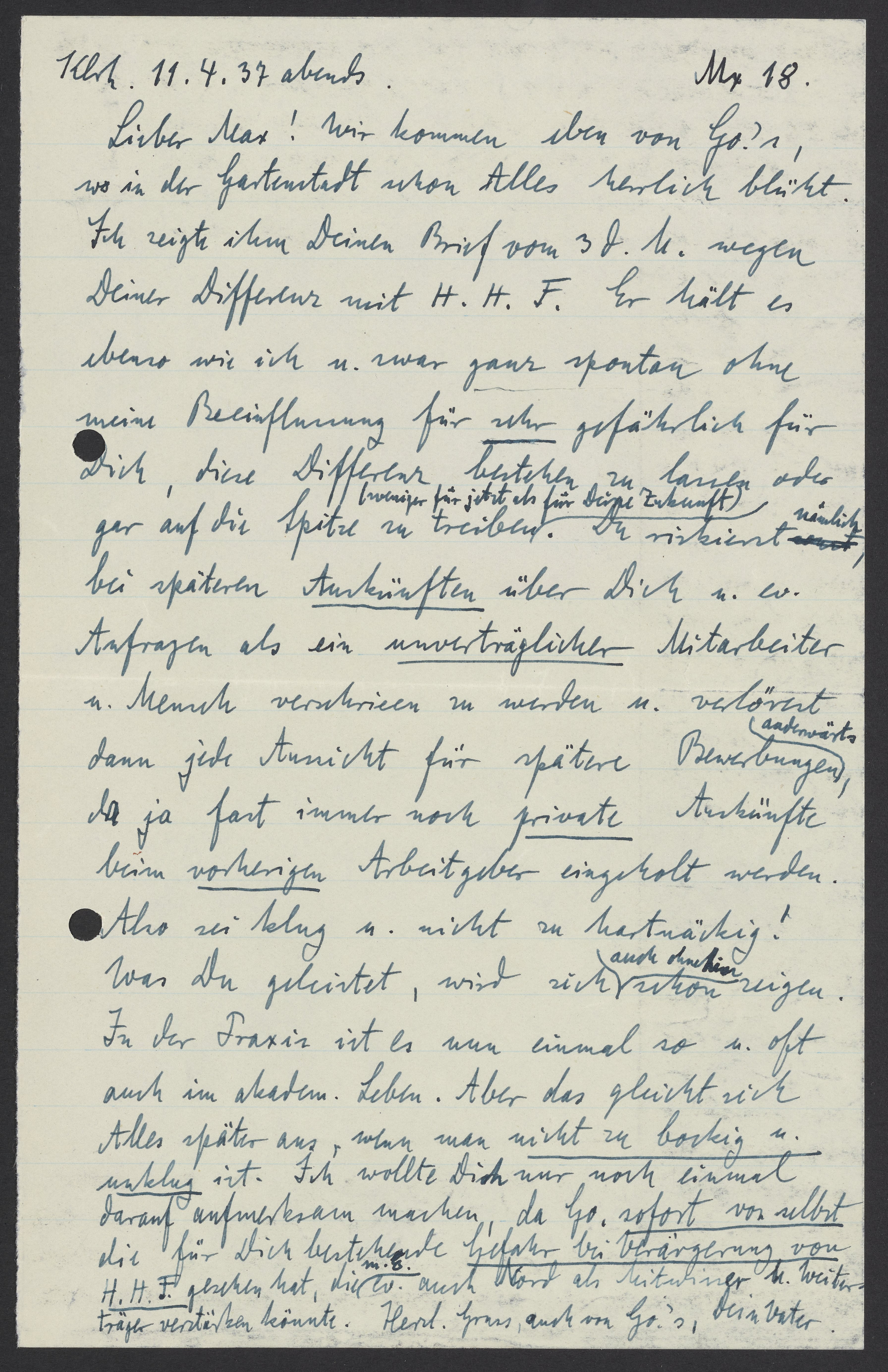 Letter from Georg Bredig to Max Bredig, April 11, 1937