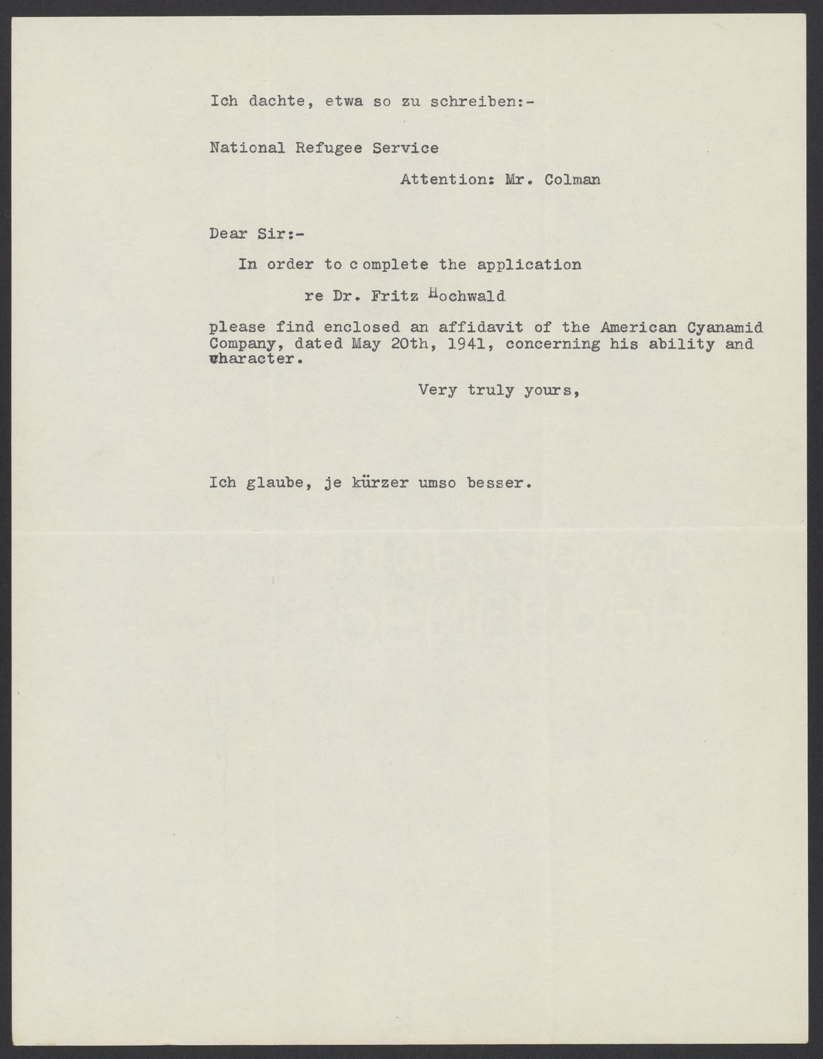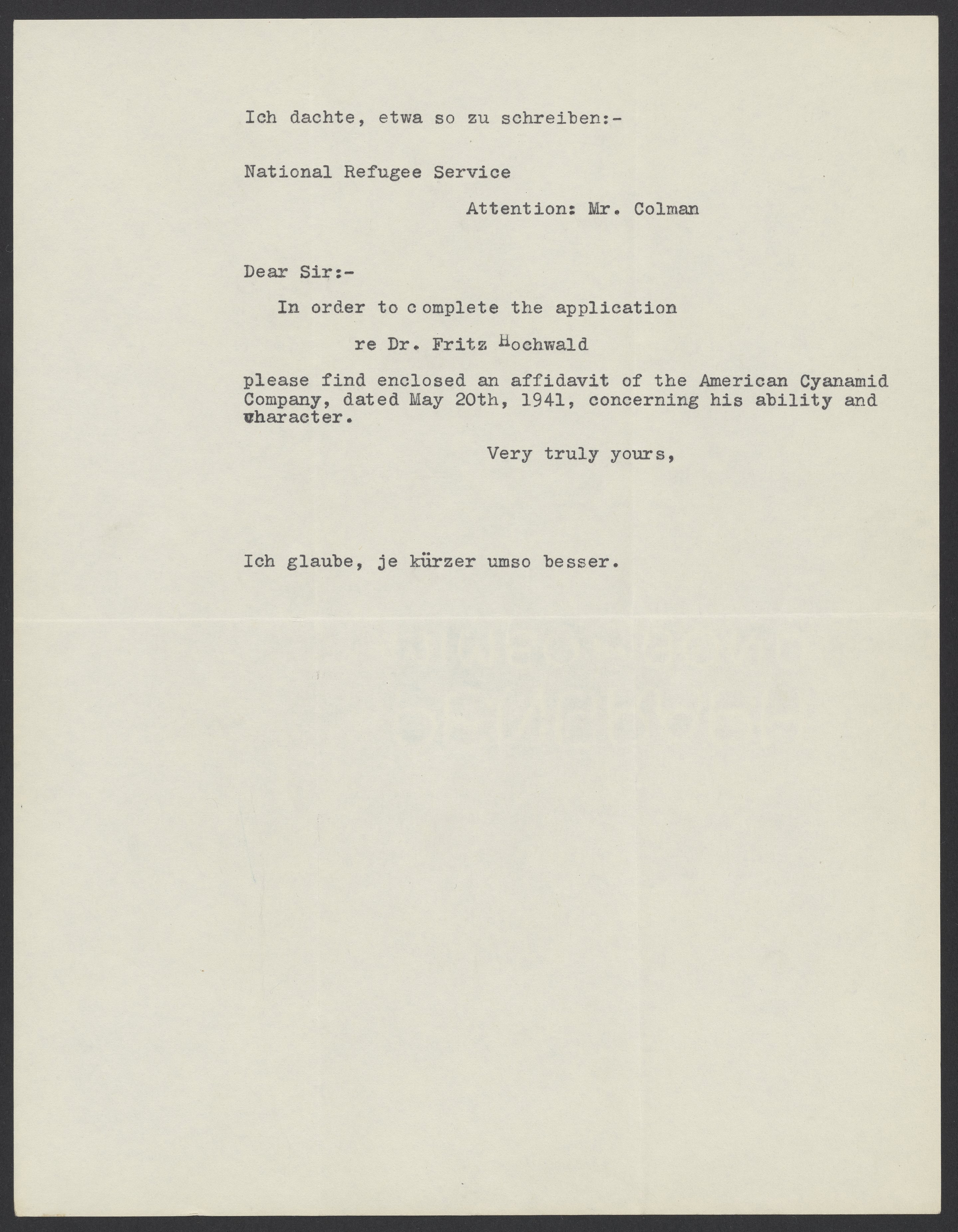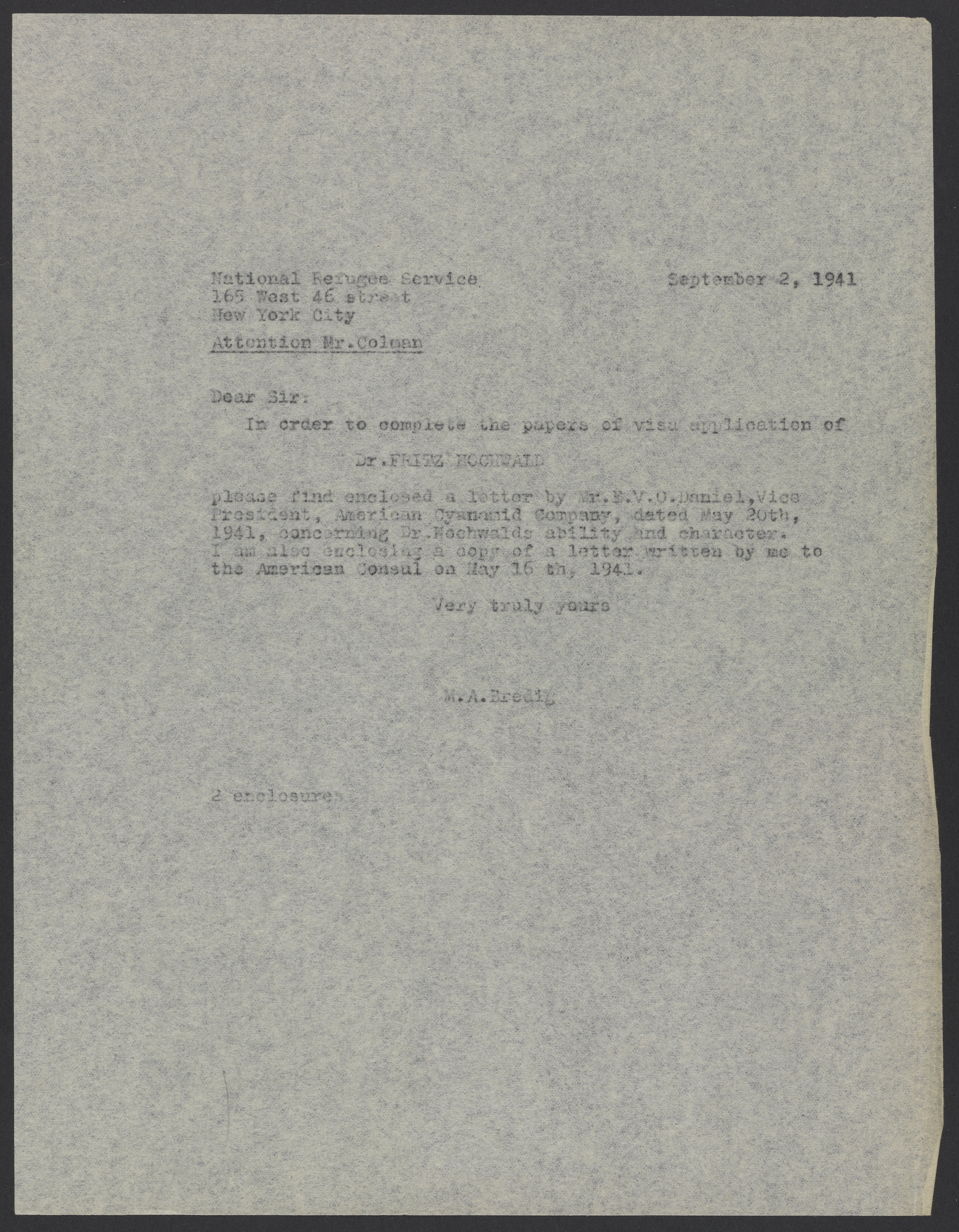Small JPG1200 x 1543px — 156 KBLarge JPG2880 x 3703px — 1.2 MBFull-sized JPG5352 x 6882px — 4.7 MBOriginal fileTIFF — 5352 x 6882px — 105 MBMax Bredig (1902-1977) sends an affidavit from the American Cyanamid company for Fritz Hochwald (1897-1968) to the National Refugee Service.