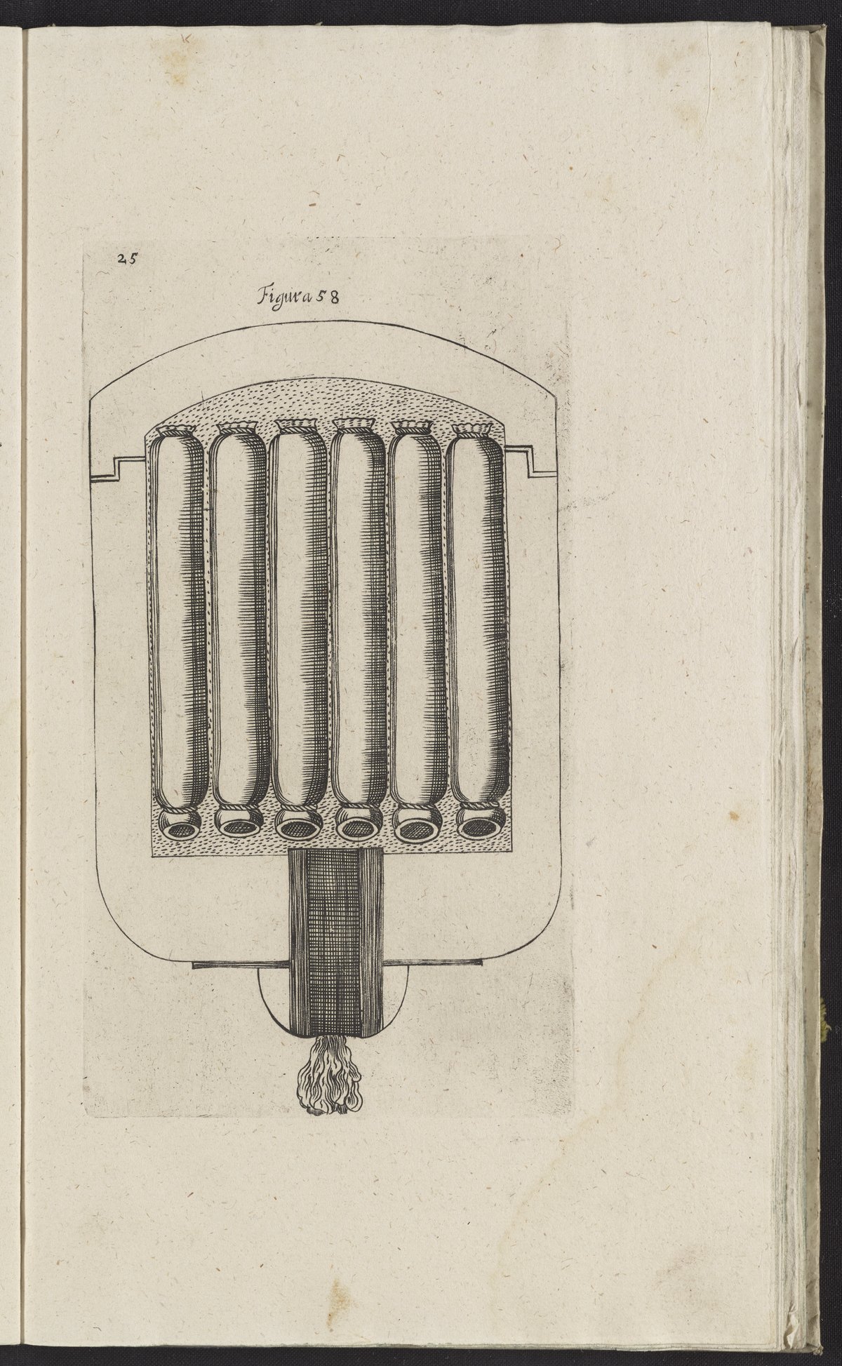 Brawe, Hermann. “Plate 25: Cluster Fireball.” In Vollenkommene Unterweisung, Wie Raketen, Feuer- Wasser- Sturm-Kugeln, Granaten, Pech-Sturm-Kräntze, Und Allerhand Lust Und Ernsthaffte Feuer-Wercke Zubereiten. Osnabrück, Germany: Johann Georg Schwänder, 1660. https://digital.sciencehistory.org/works/1n79h429p.