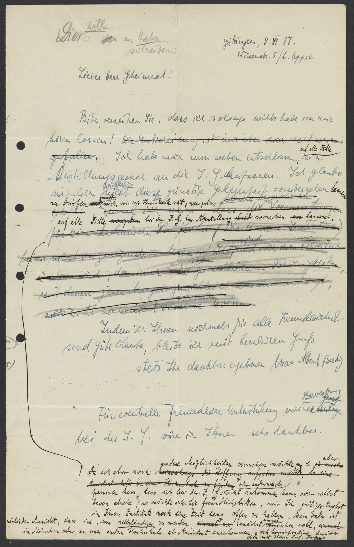 Letter draft from Max Bredig to Fritz Haber, July 1927