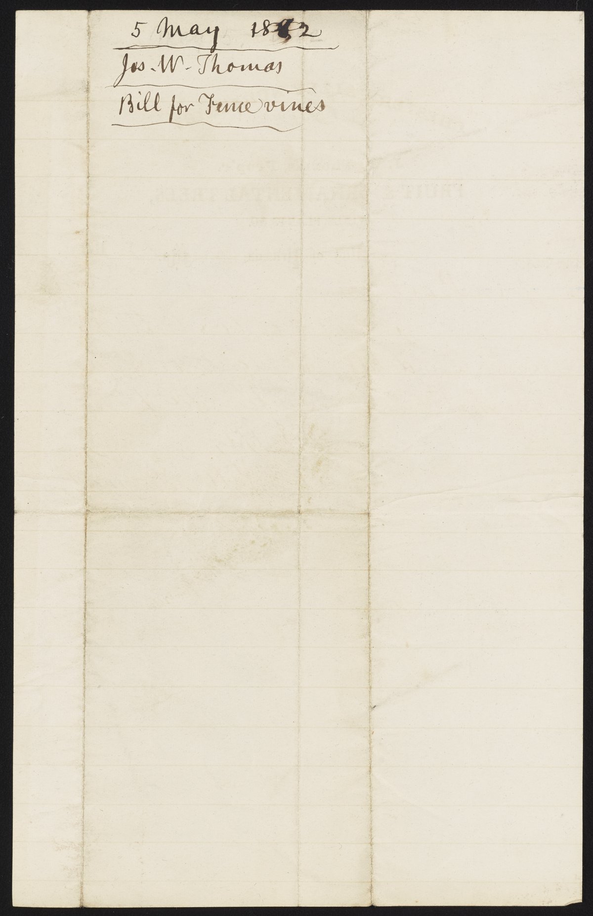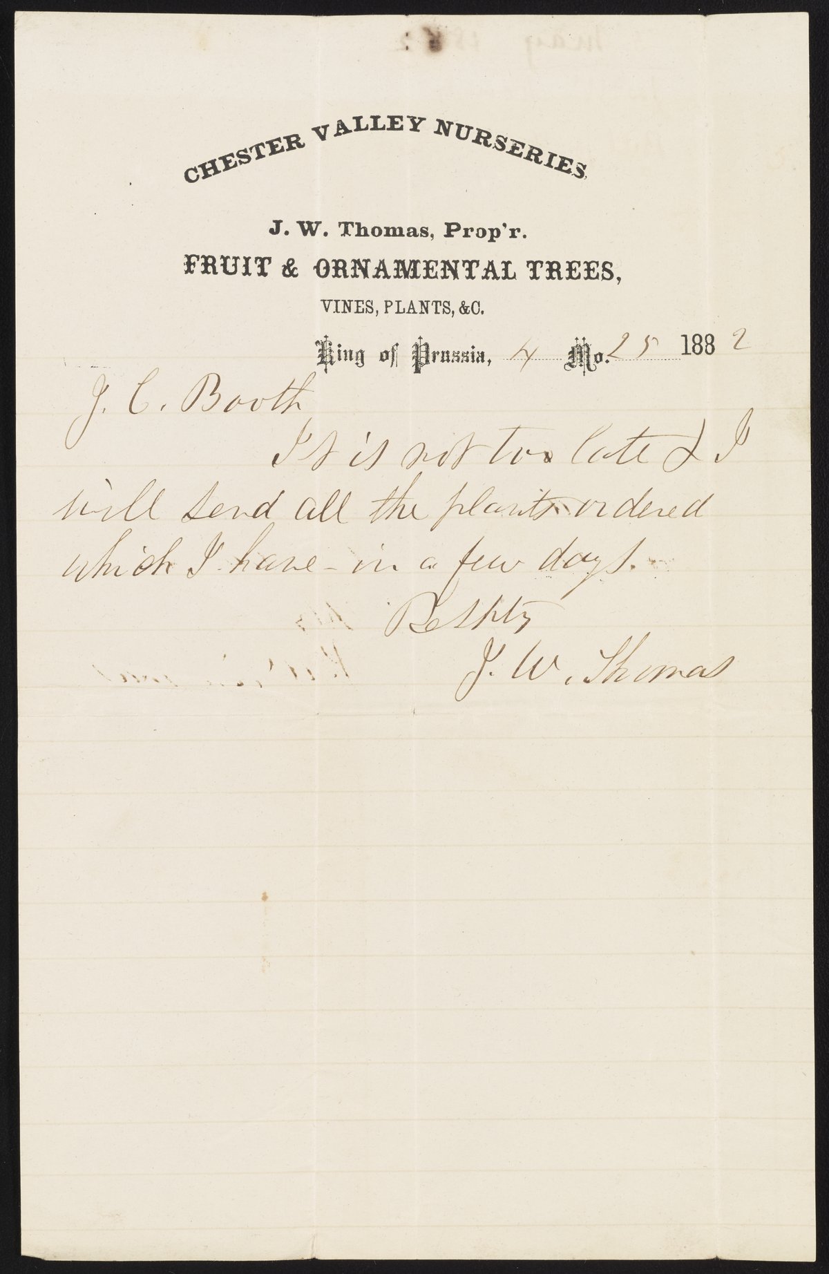 Letter from J.W. Thomas to James Curtis Booth, May 5, 1882