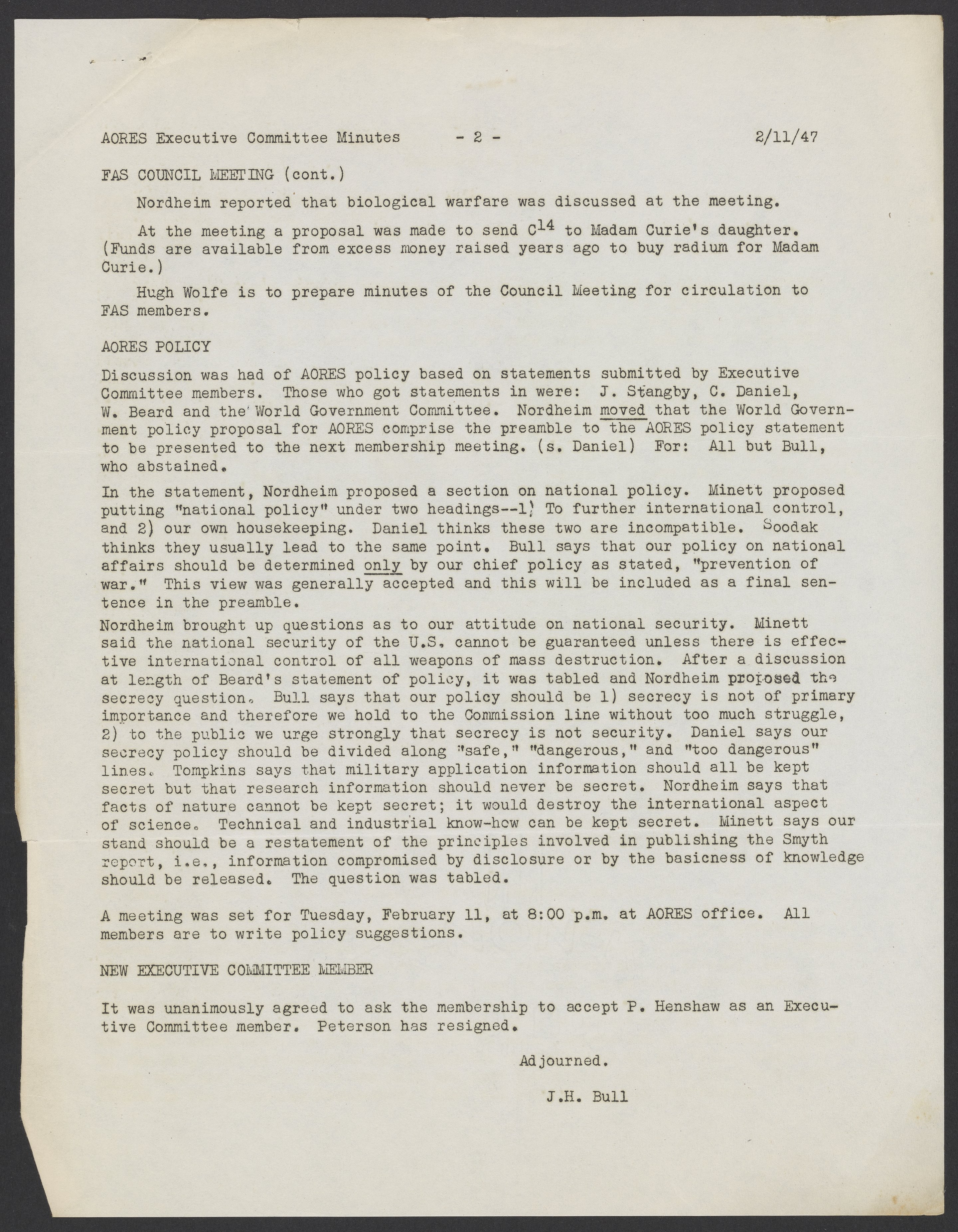 Association of Oak Ridge Engineers and Scientists. “Association of Oak Ridge Engineers and Scientists (AORES) Meeting Minutes, February 6, 1947,” February 6, 1947. Papers of Georg and Max Bredig, Box 10, Folder 4. Science History Institute. Philadelphia. https://digital.sciencehistory.org/works/1tkaxgz.