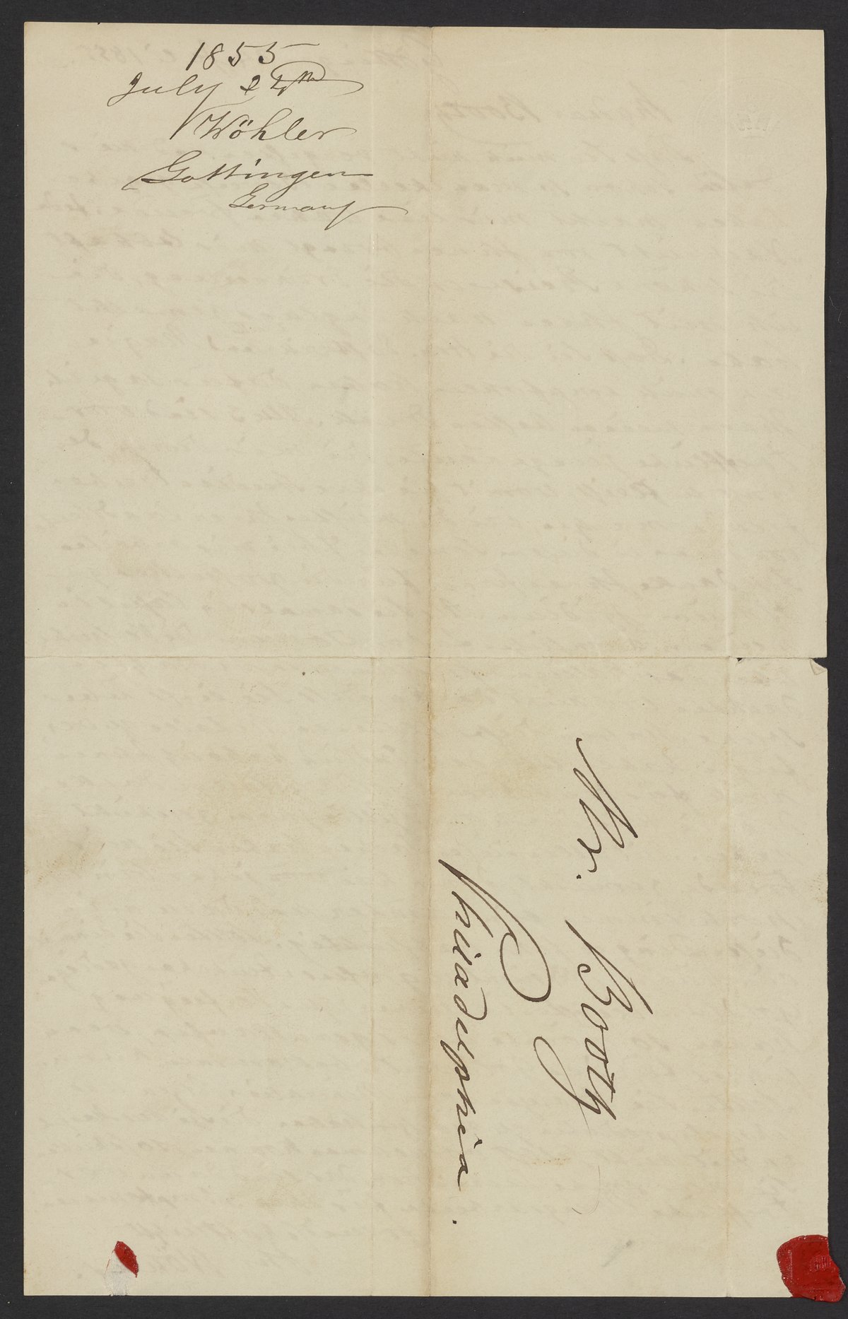 Letter from Friedrich Wöhler to James Curtis Booth, July 24, 1855
