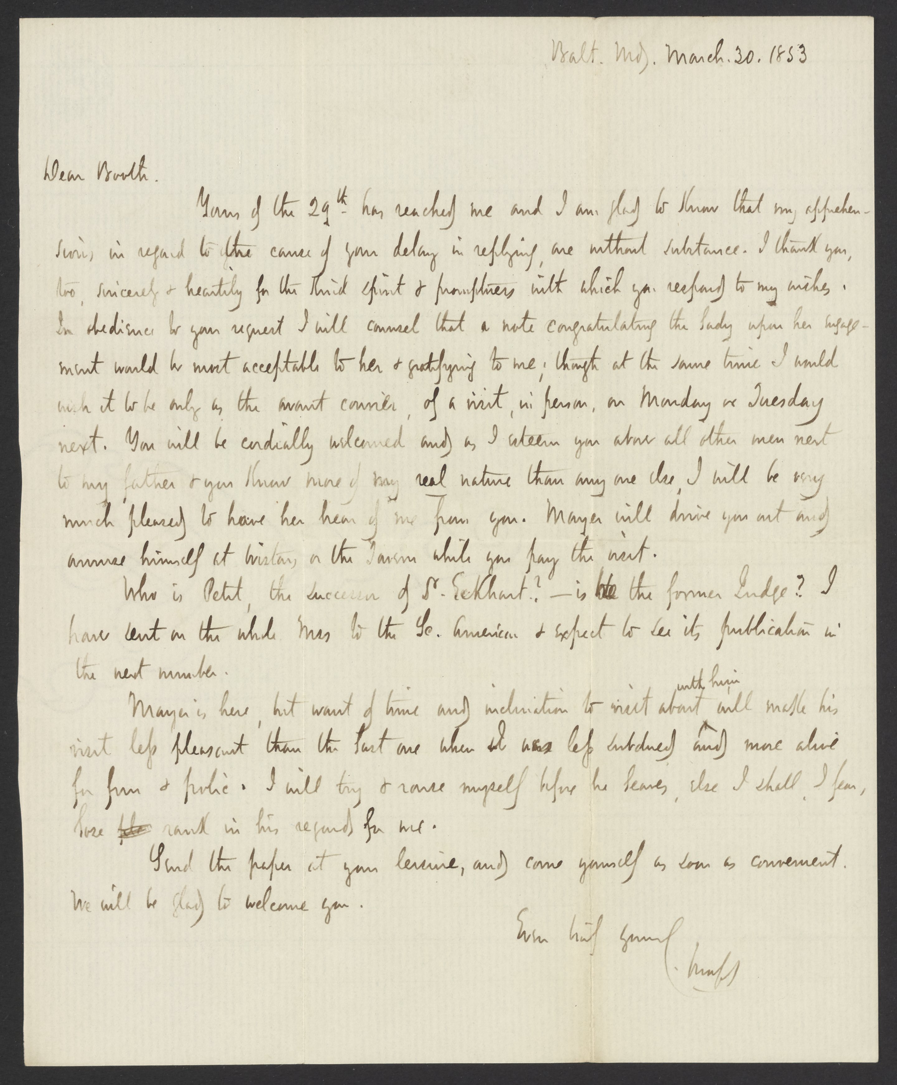Letter from Campbell Morfit to James Curtis Booth, March 30, 1853