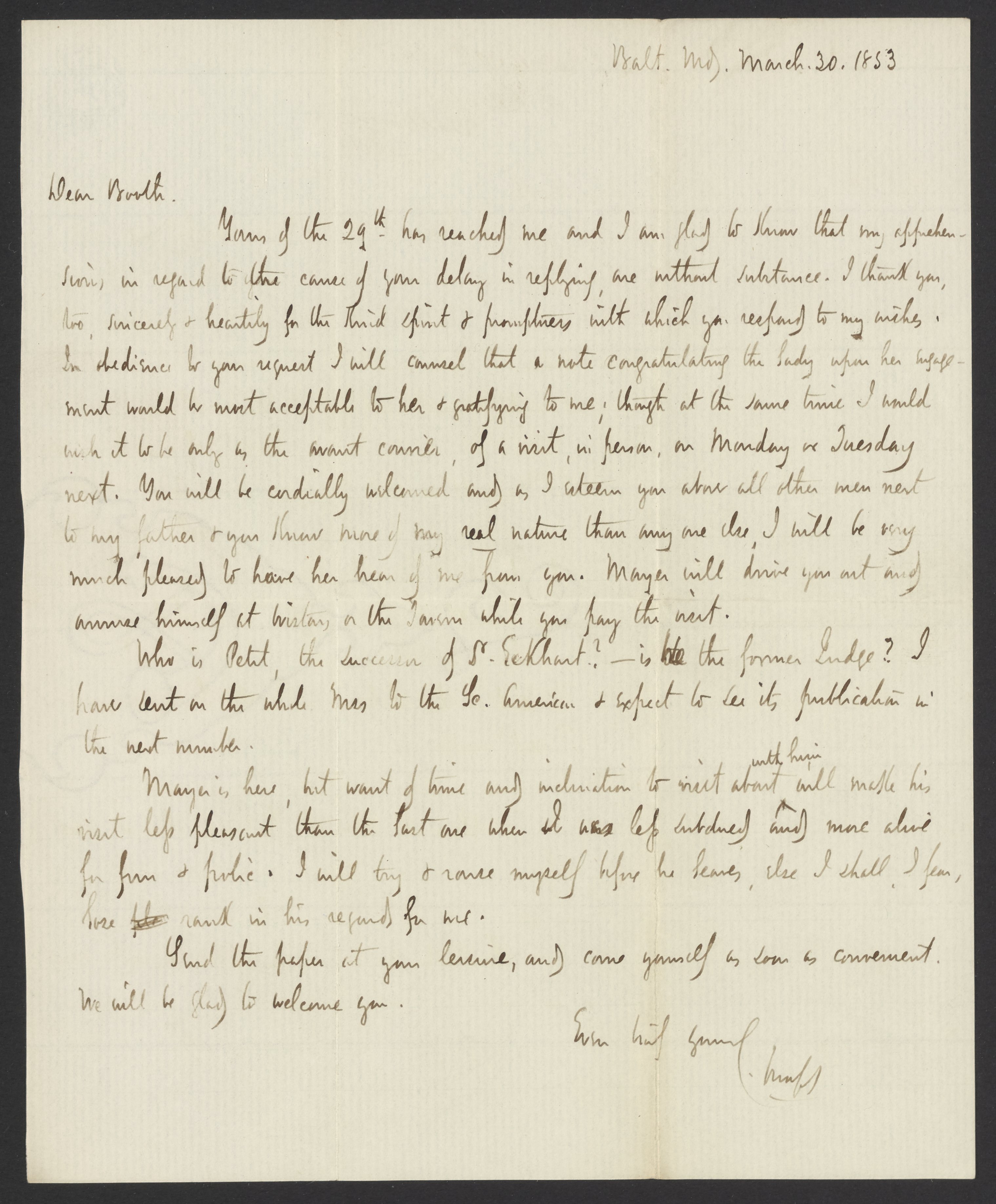 Letter from Campbell Morfit to James Curtis Booth, March 30, 1853