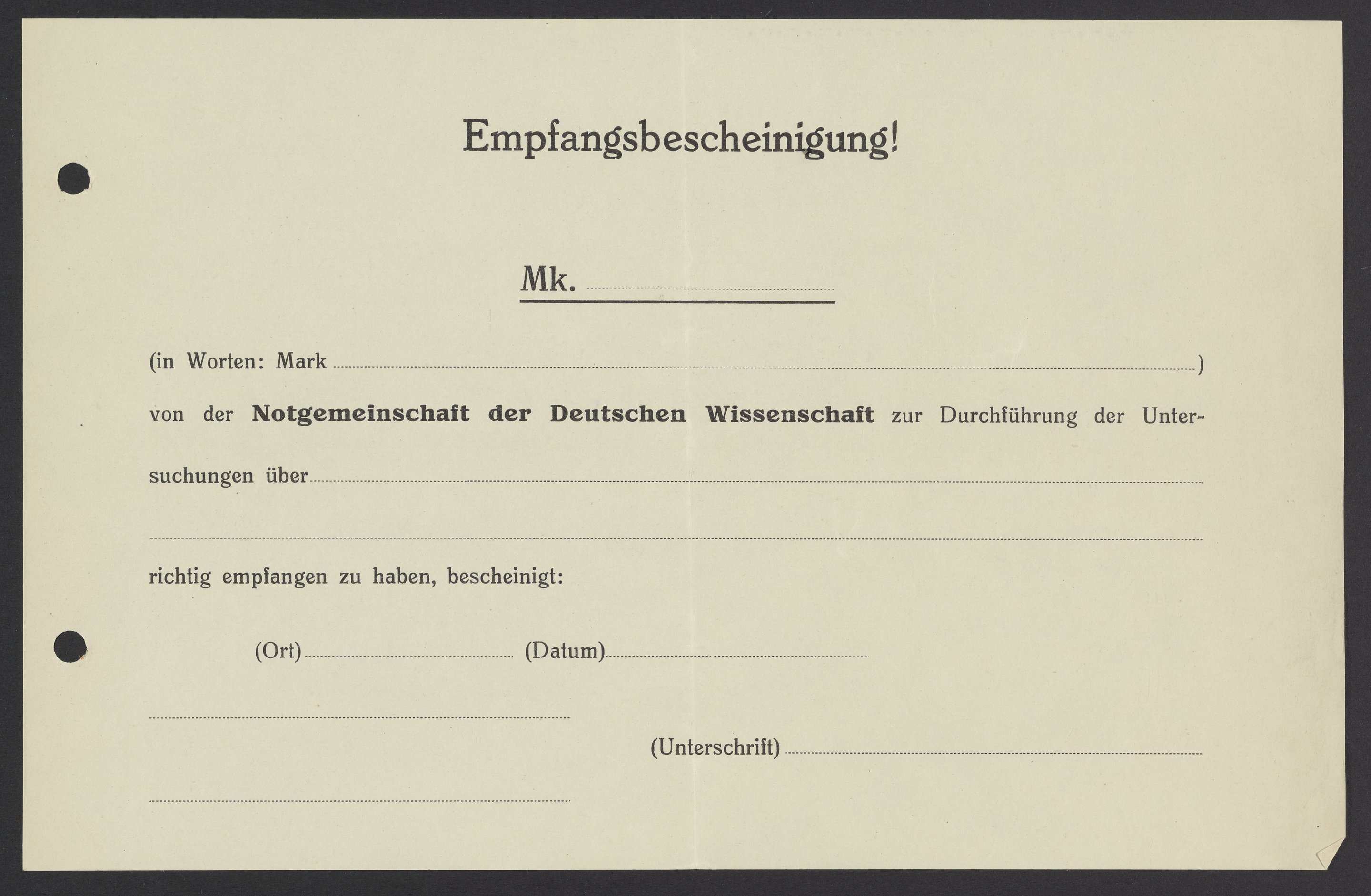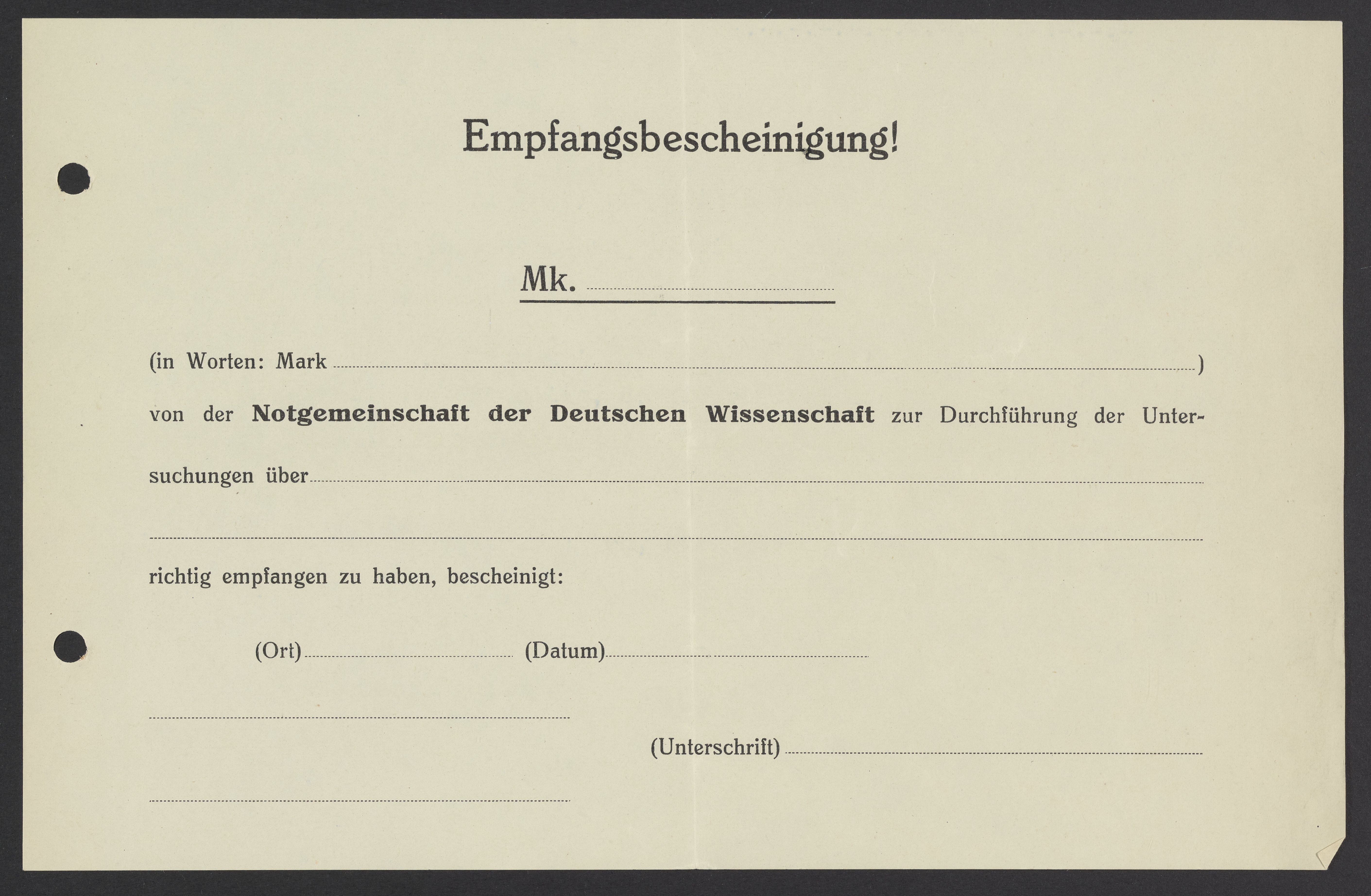 Blank receipt from Notgemeinschaft der Deutschen Wissenschaft