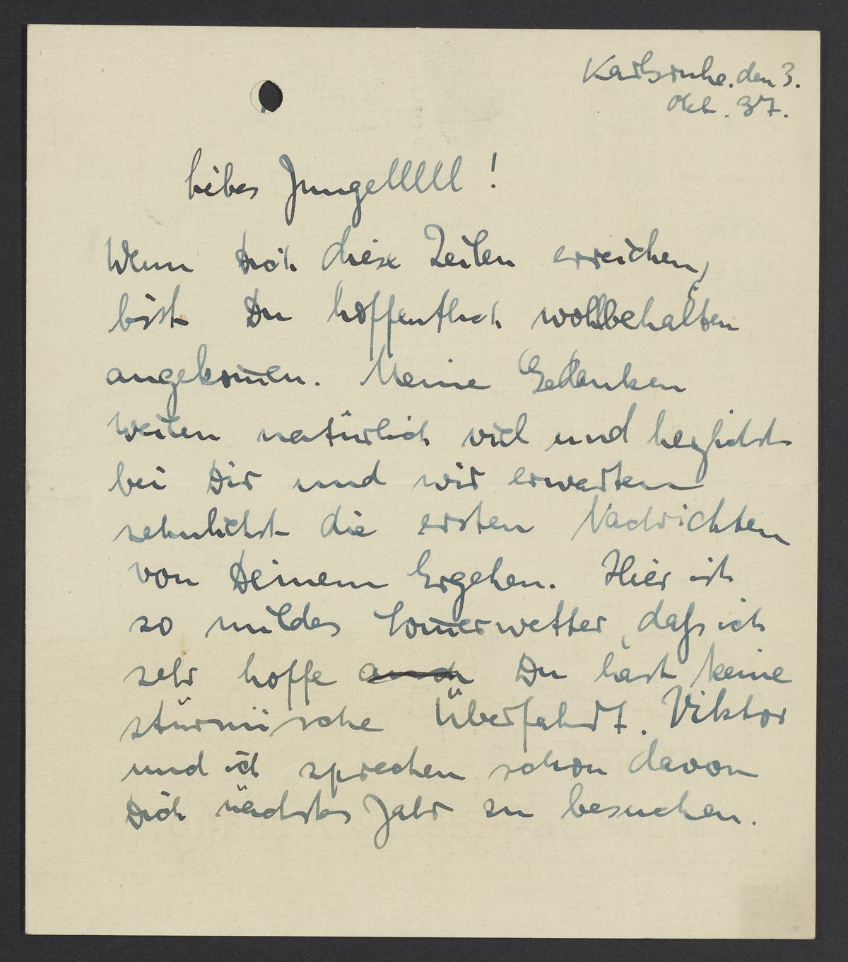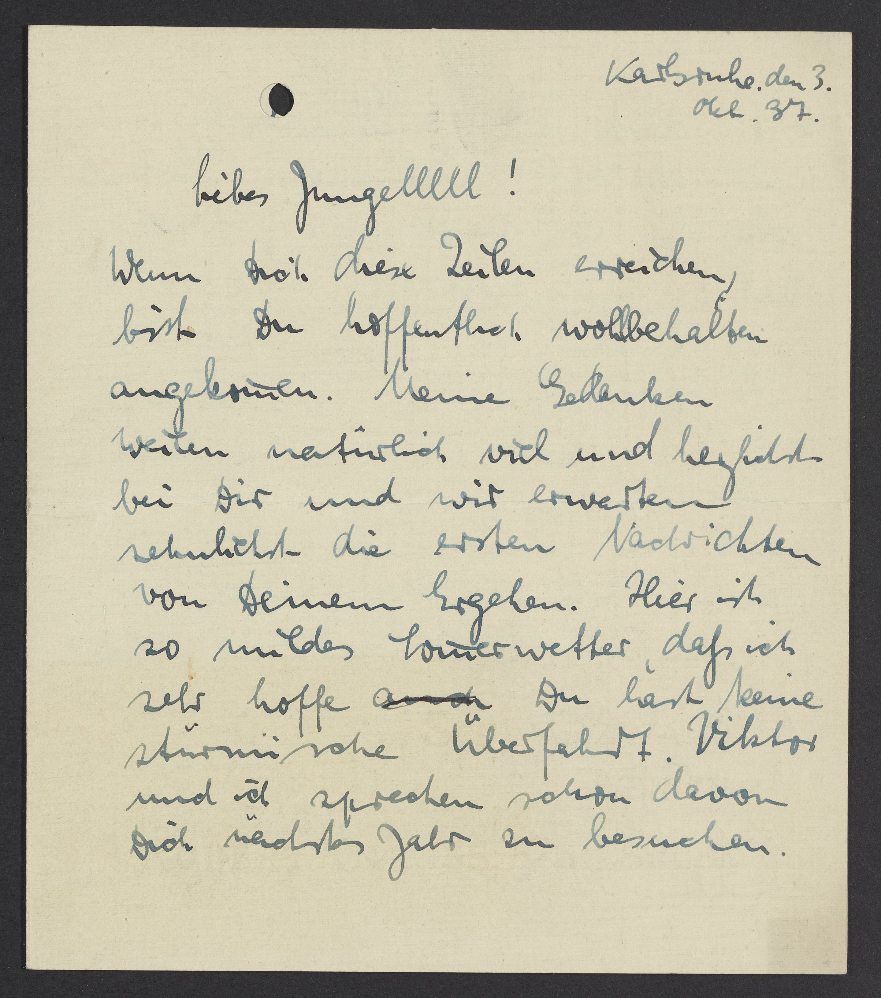 Wenn Dich diese Zeilen erreichen, bist Du hoffentlich wohlbehalten angekommen. Meine Gedanken weilen natürlich viel und lediglich bei Dir und wir erwarten sehnlich die ersten Nachrichten von Deinem Ergehen. Hier ist so mildes Sommerwetter, daß ich sehr hoffe Du hast Deine keine stürmische Überfahrt. Viktor und ich sprechen schon davon Dich nächstes Jahr zu besuchen.