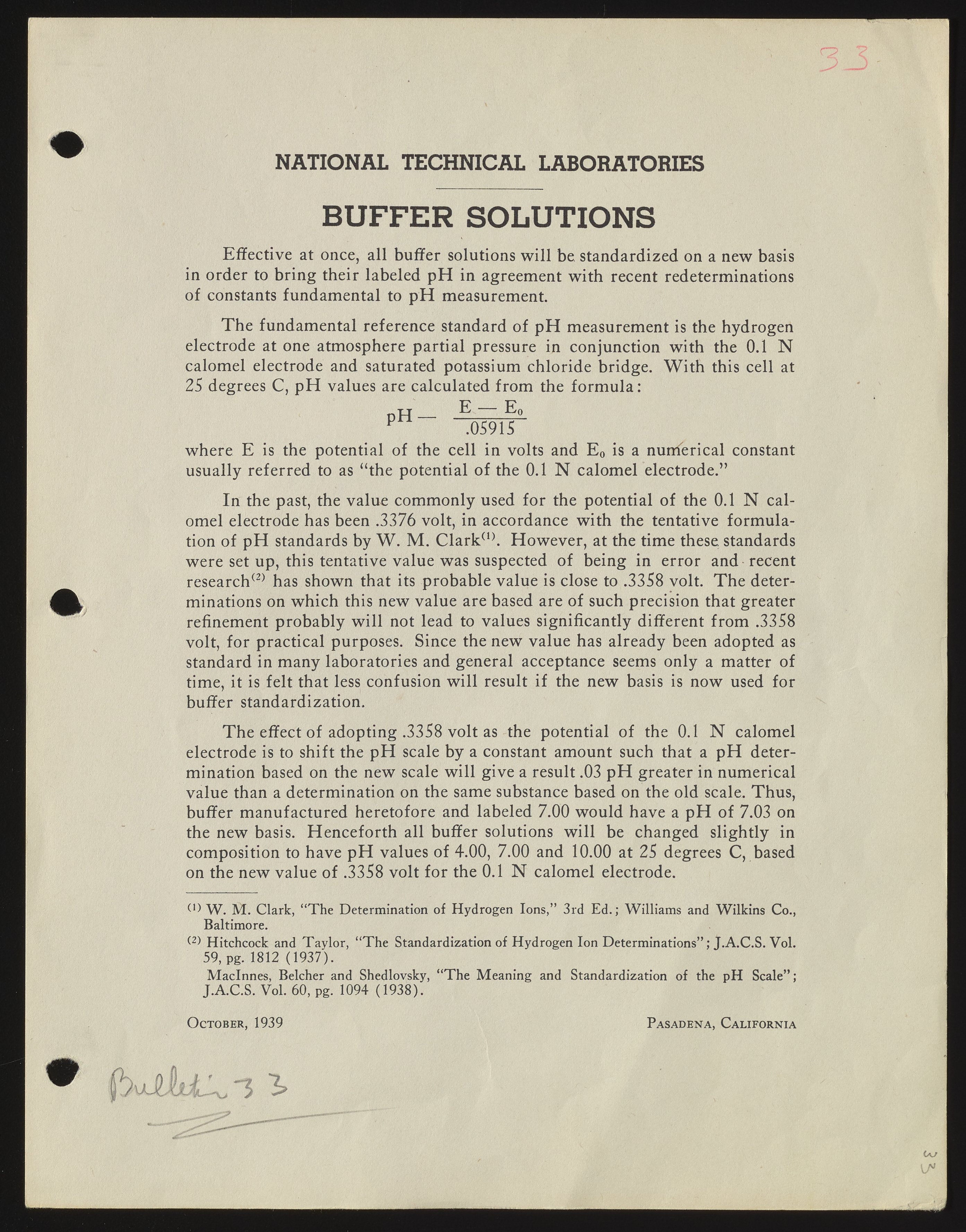 Written by NTL (the precursor to Beckman Instruments, Inc.), this document outlines new standards for buffer solutions used in pH meters.