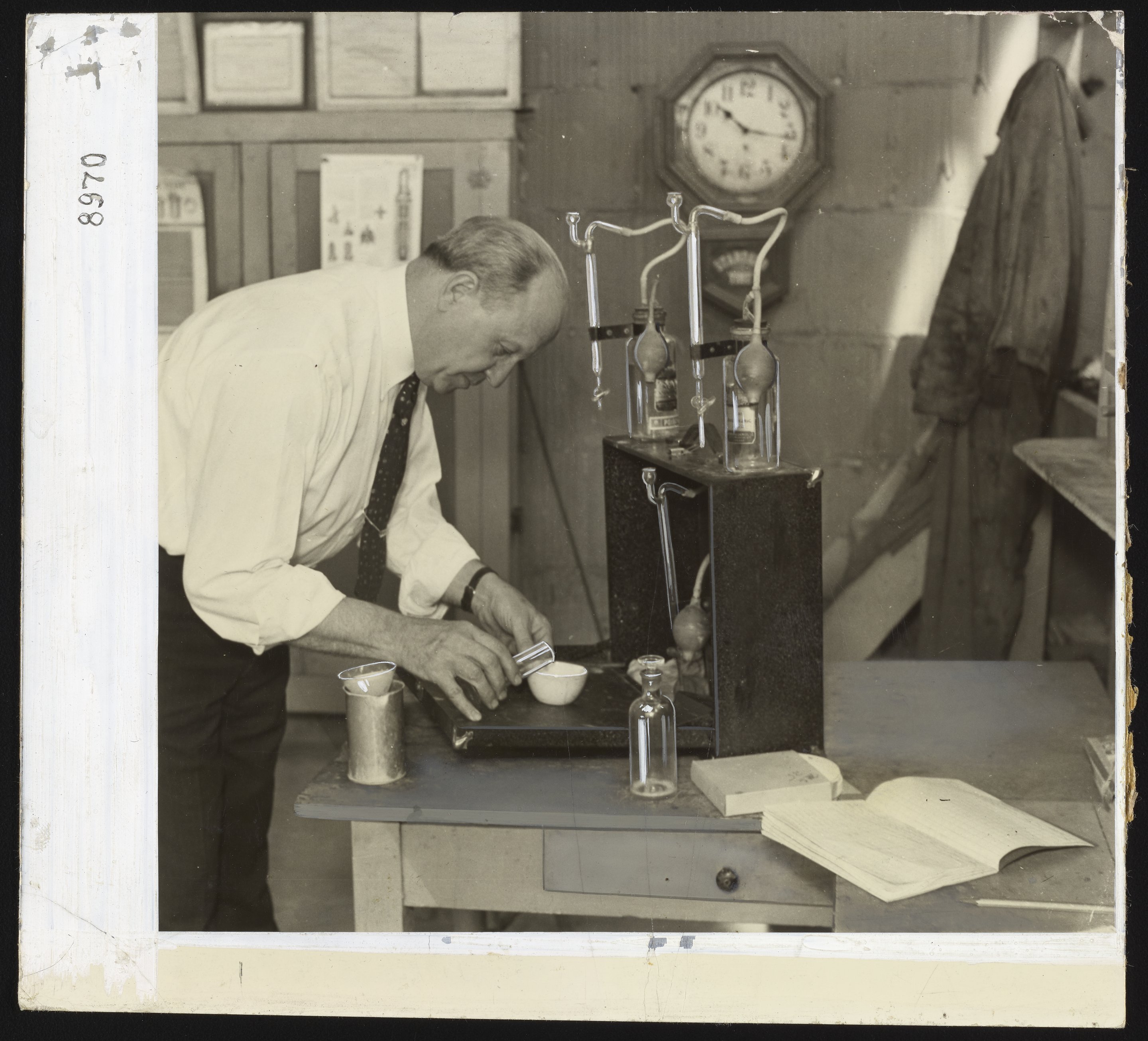 Dearborn Chemical Company, and The Fensholt Company. “Water Sample Testing at Dearborn Facility,” circa 1938. BetzDearborn, Incorporated Records, Box 15, Folder 64. Science History Institute. Philadelphia. https://digital.sciencehistory.org/works/1z40kt806.