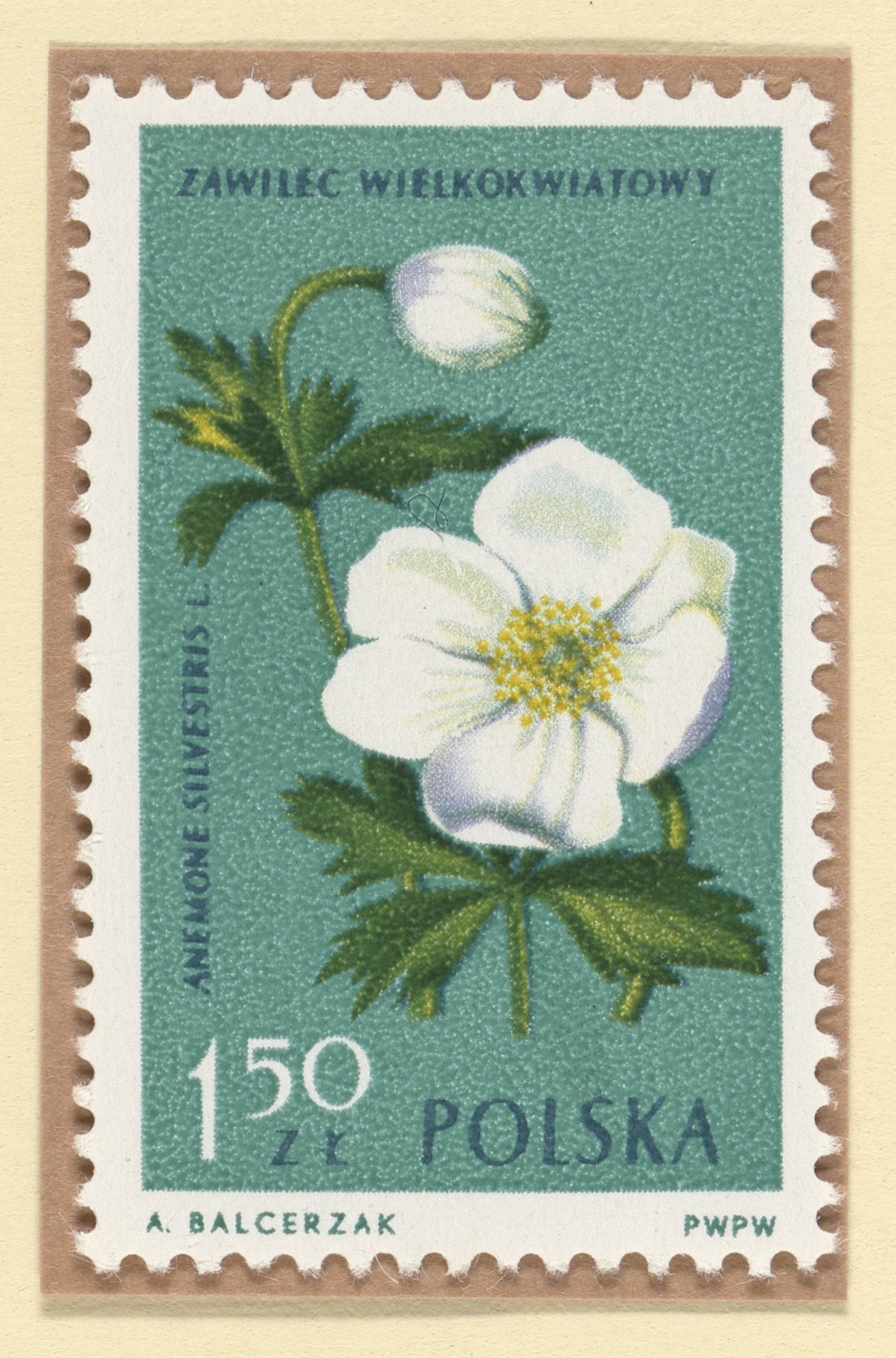 Balcerzak, Alojzy. “Snowdrop Anemone (Anemonoides Sylvestris) Postage Stamp, Poland,” 1962. Witco Stamp Collection, Box 5. Science History Institute. Philadelphia. https://digital.sciencehistory.org/works/21x89h5.