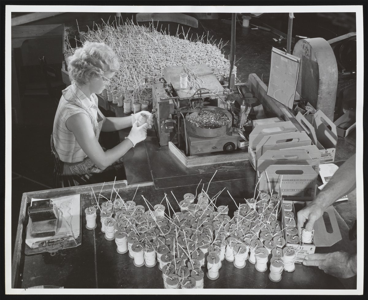 Formed in 1912 as part of an anti-trust settlement with DuPont, the Hercules Powder Company (later Hercules Inc.) specialized in the manufacture of explosives and smokeless powders. The company's Port Ewen plant produced a range of special detonators designed for military use, as well as construction jobs that required blasts of dynamite, such as the clearing of quarries, mines, and tunnels.