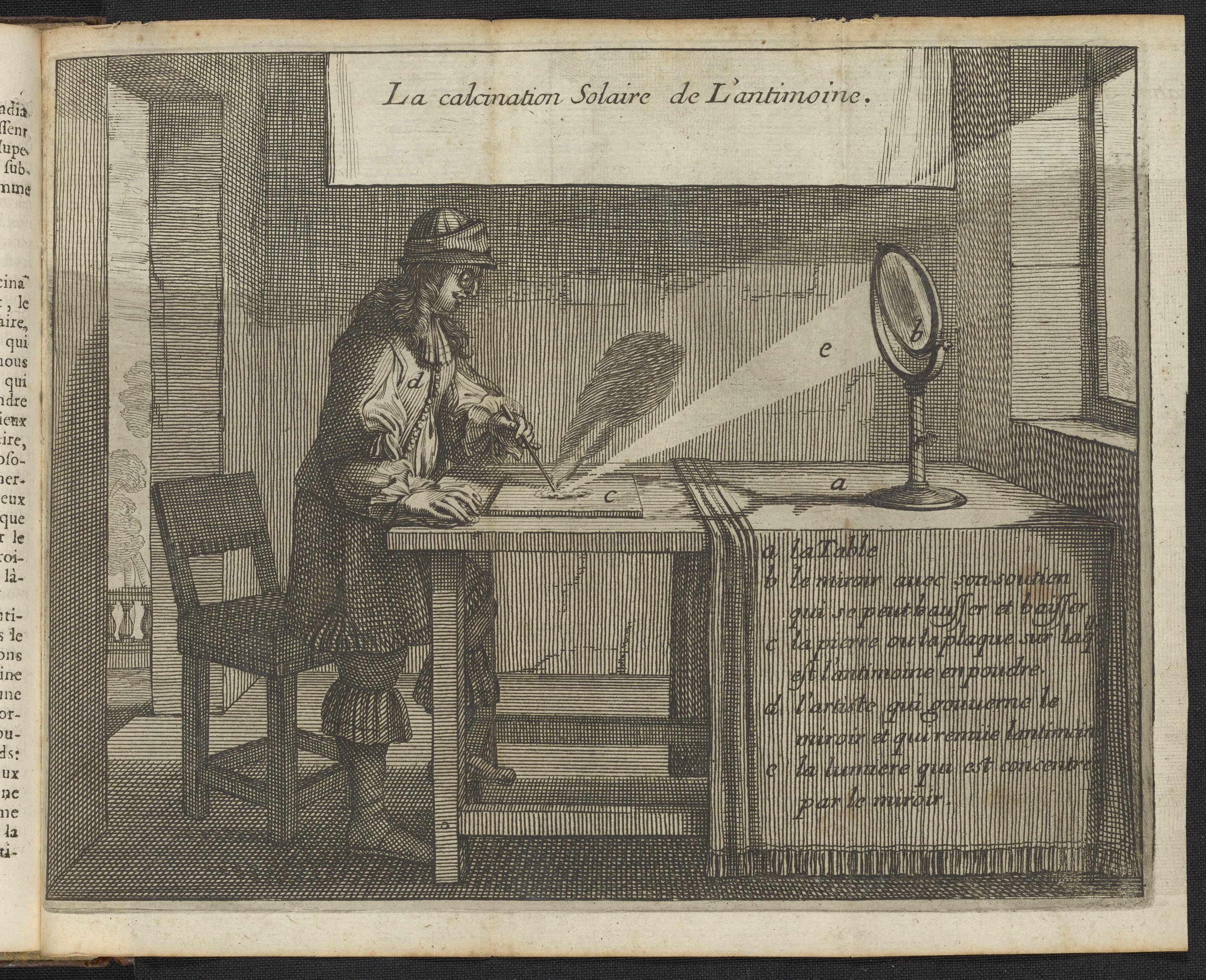 Le Fèvre, Nicaise. “La Calcination Solaire De L'Antimoine.” In Traité De La Chymie, Vol. 2. Paris, France: Thomas Jollie, 1669. https://digital.sciencehistory.org/works/2227mq77f.