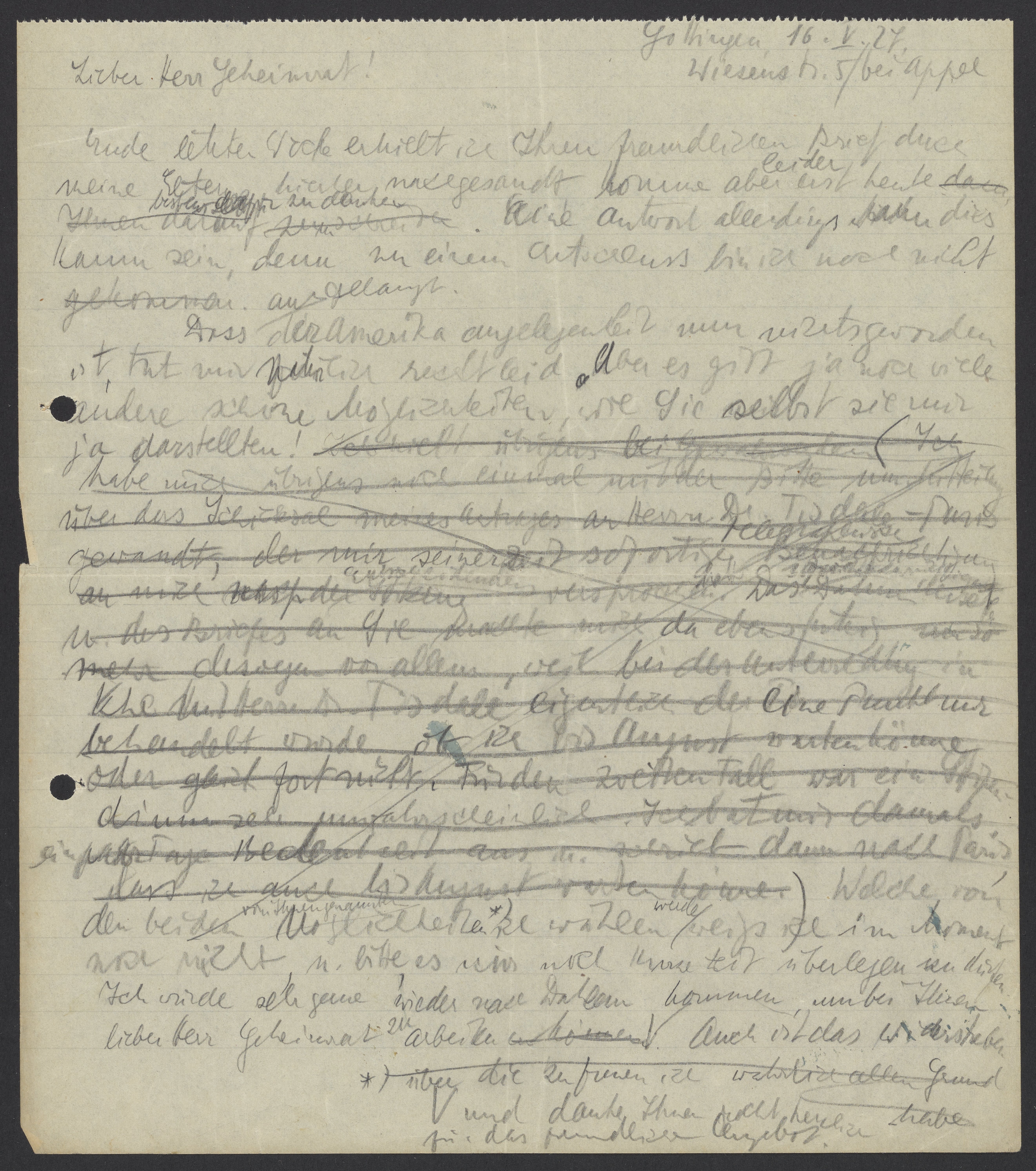 Letter draft from Max Bredig to Fritz Haber, May 1927