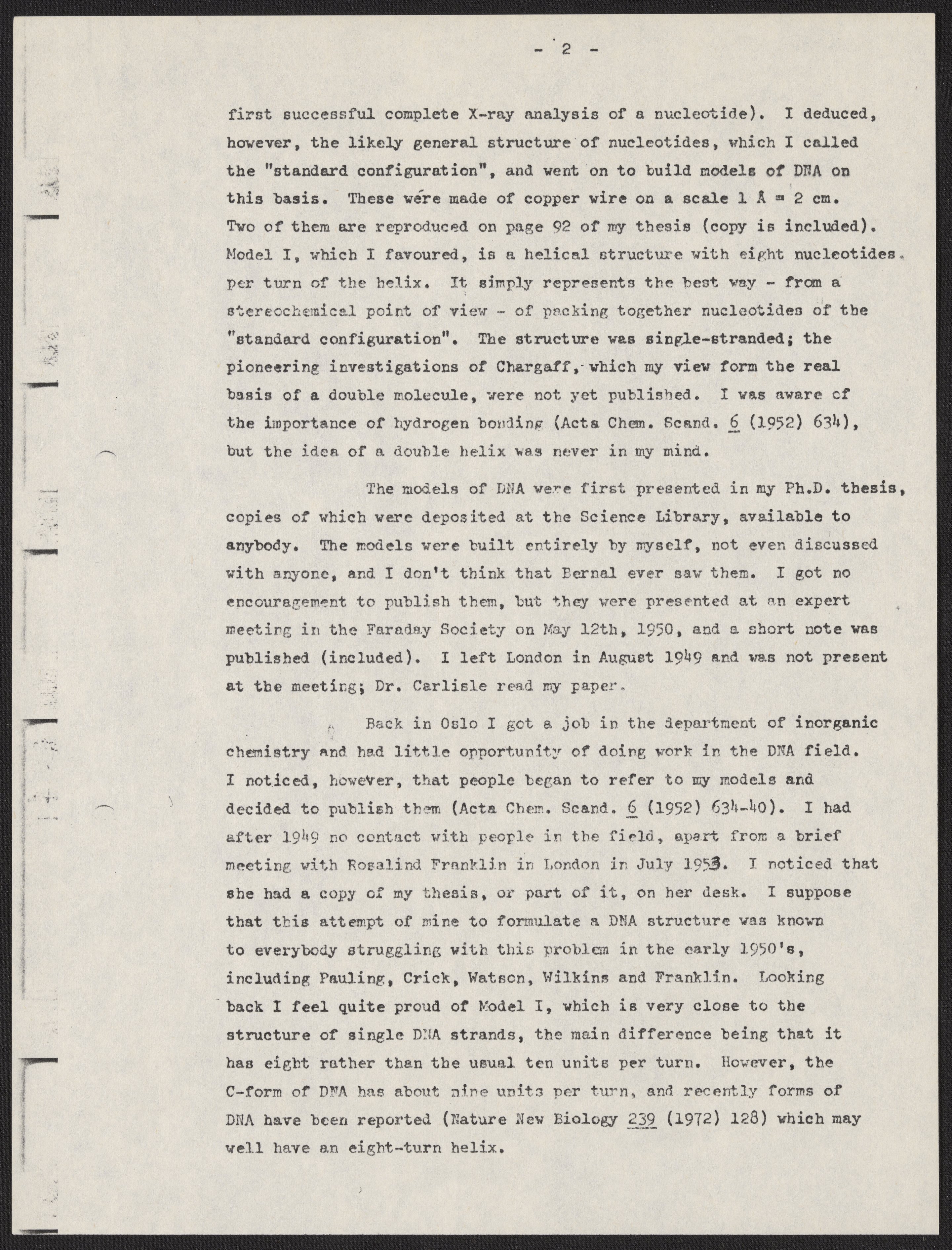 My work on Nucleic Acid Structure 1947-1949