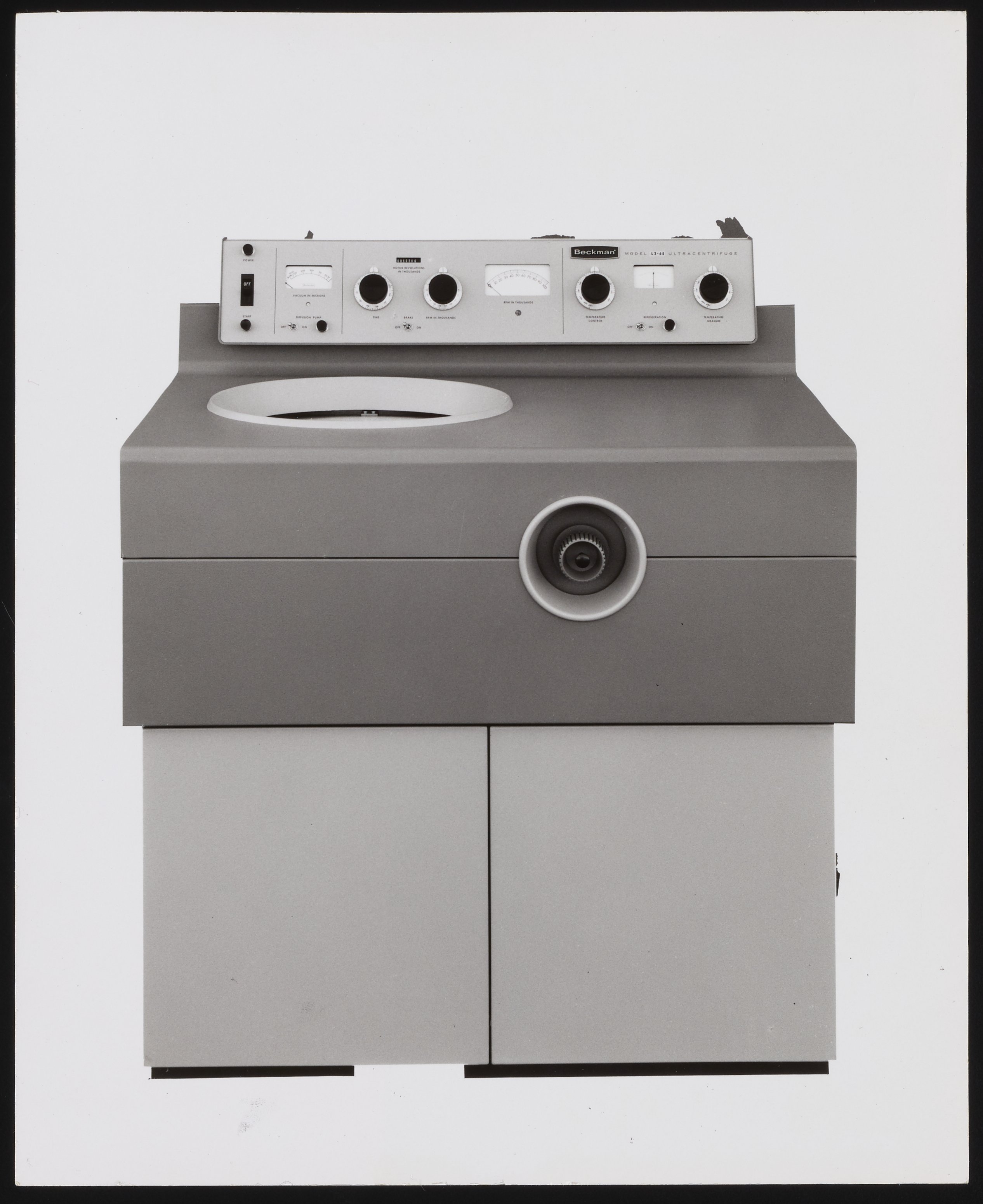 “Beckman Model L2-65 Ultracentrifuge,” n.d. Beckman Historical Collection, Box 78. Science History Institute. Philadelphia. https://digital.sciencehistory.org/works/2801pg43w.