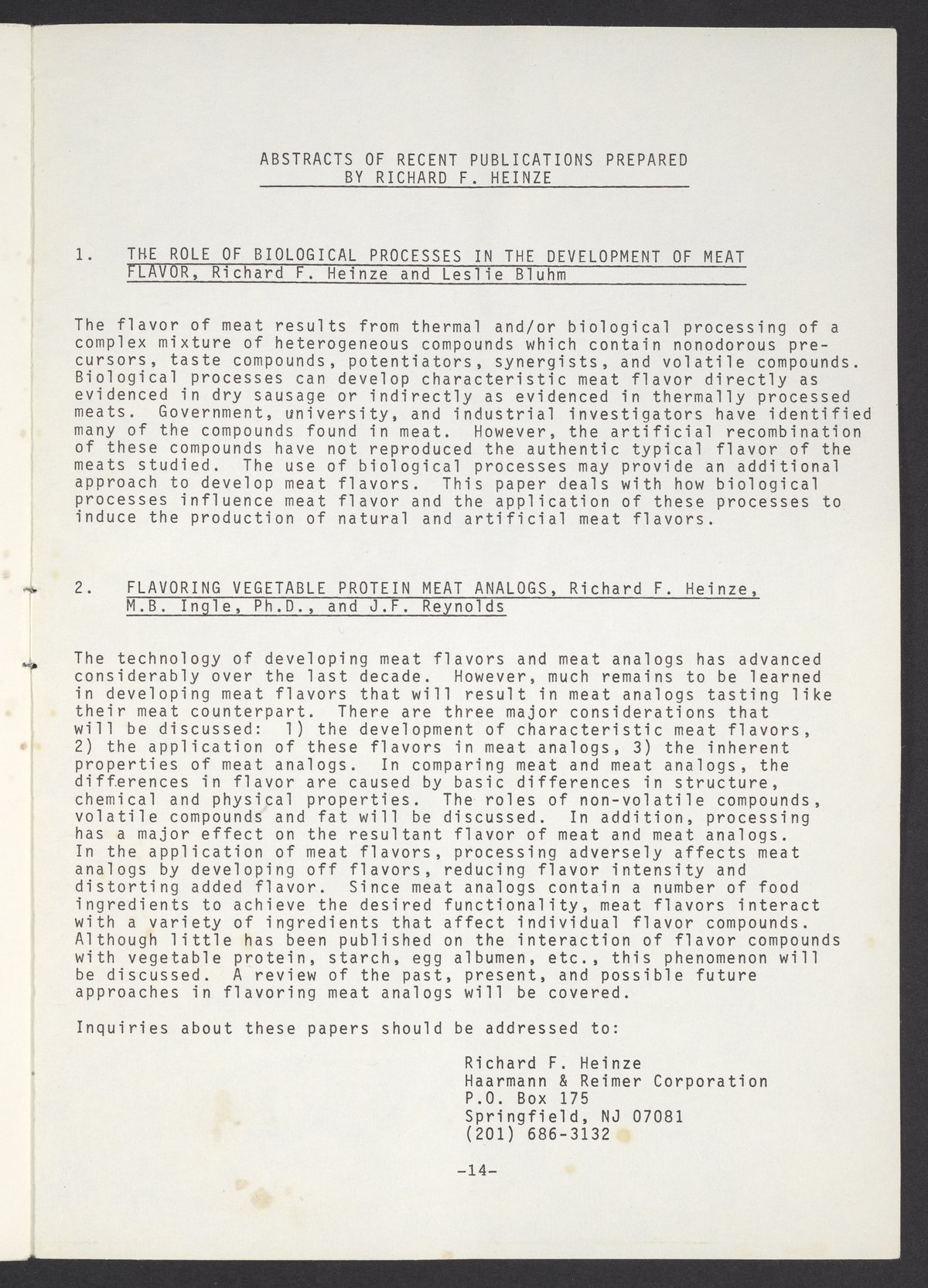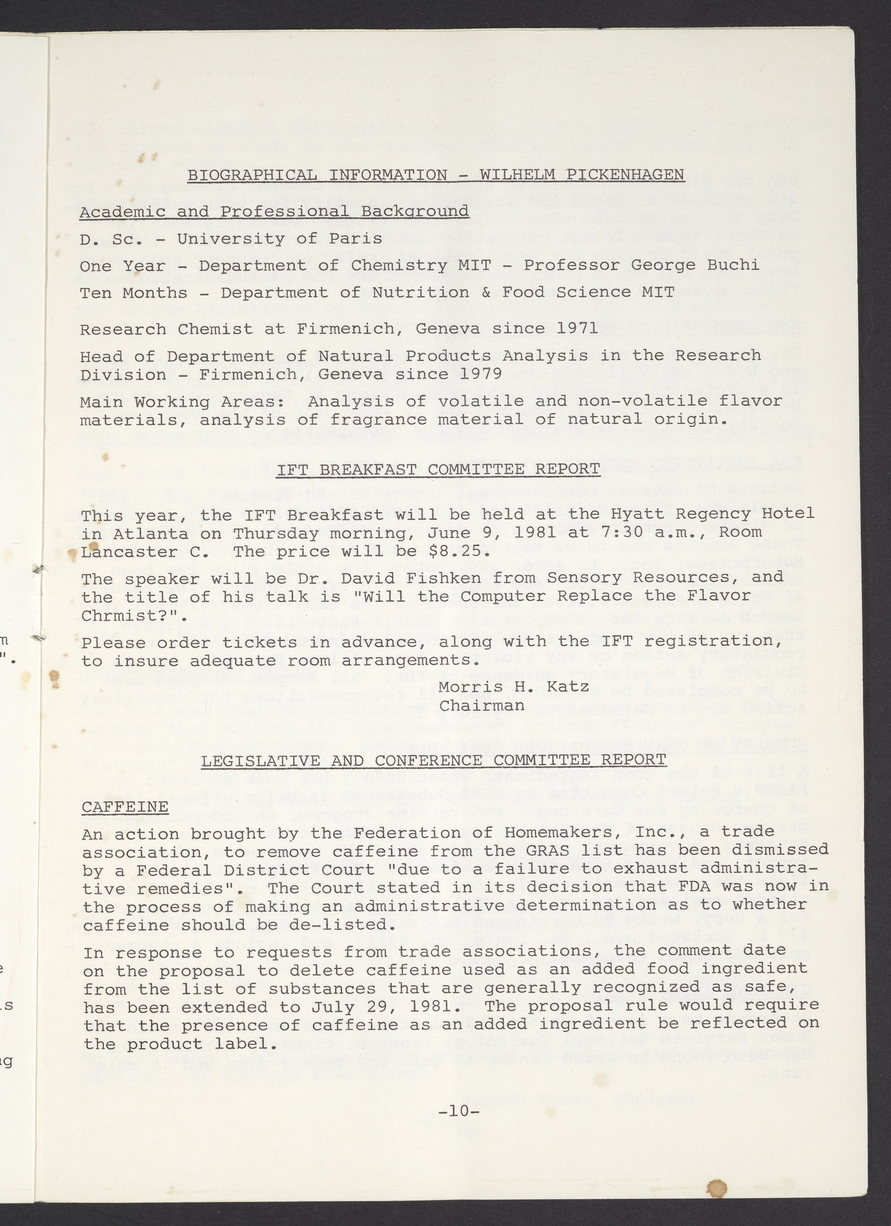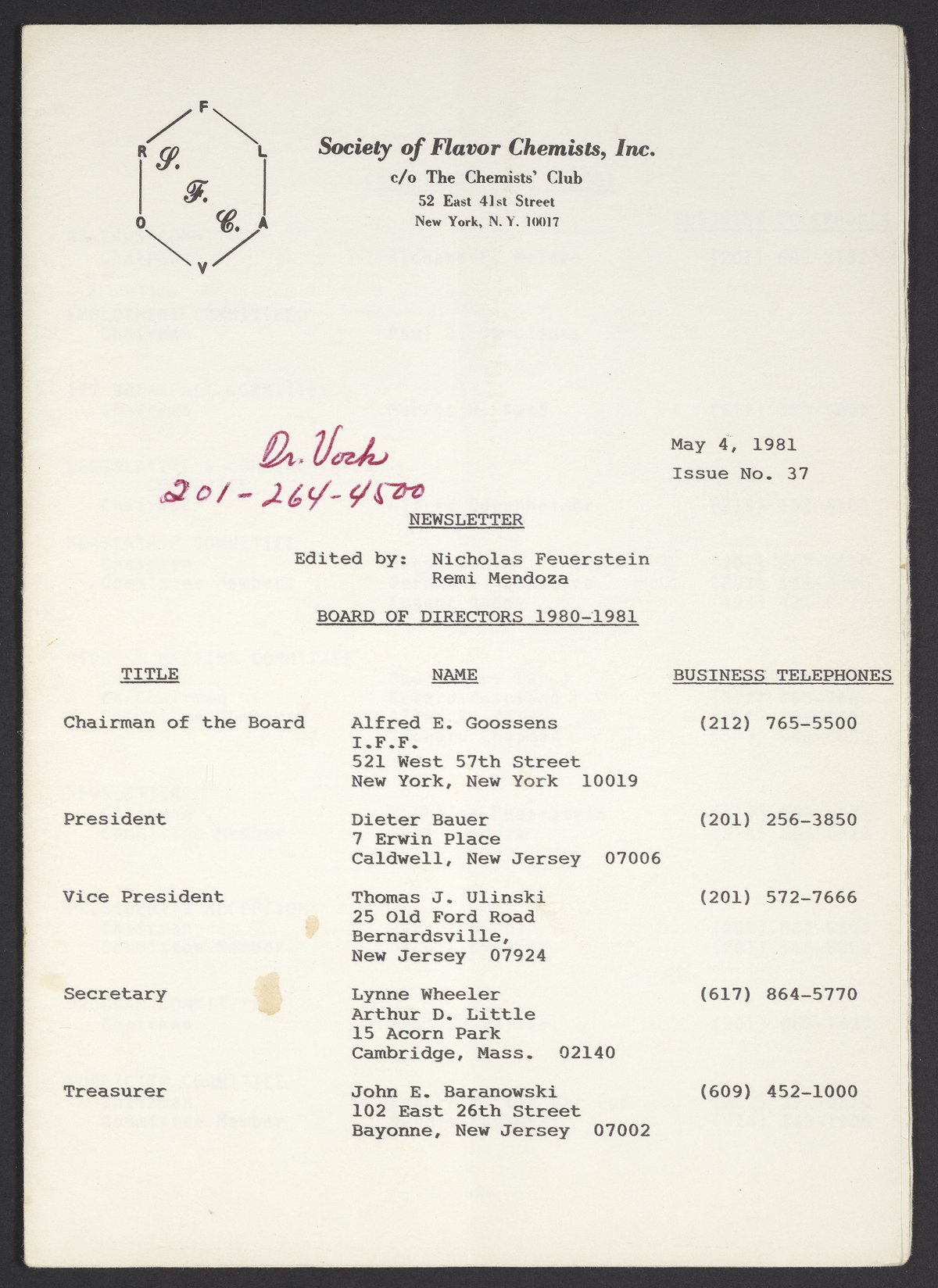 Society of Flavor Chemists newsletter, May 1981