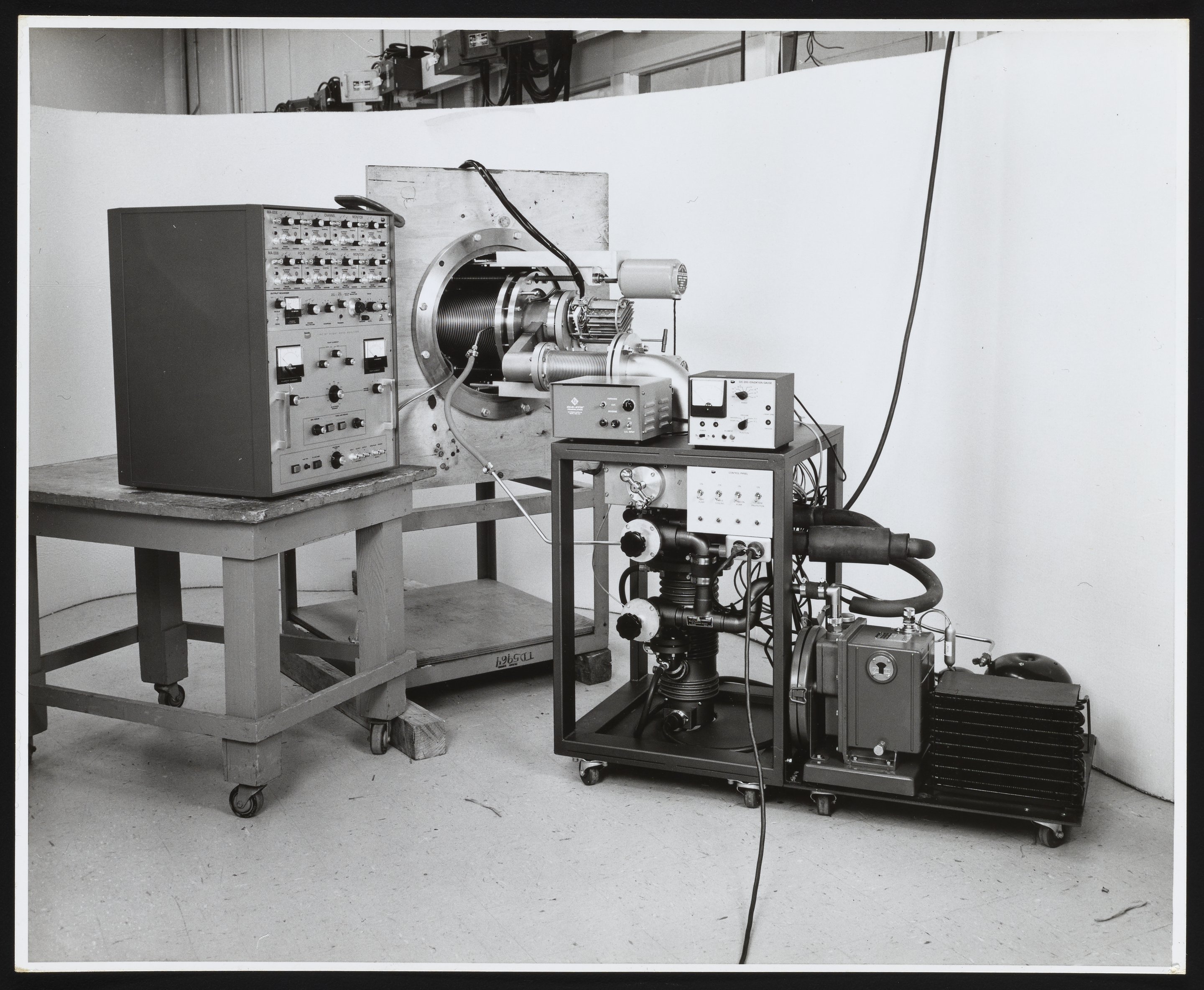 Small JPG1200 x 987px — 195 KBLarge JPG2880 x 2368px — 935 KBFull-sized JPG4228 x 3476px — 1.8 MBOriginal fileTIFF — 4228 x 3476px — 42.1 MBMultiple views of assorted accessories, including a Model MA-006 Four Channel Monitor, a Time-of-Flight Mass Analyzer, and a Model GC-300 Ionization Gauge designed for use with the Bendix Corporation Time-of-Flight Mass Spectrometer. The Time-of-Flight Mass Spectrometer (TOFMS) was the flagship analytical instrument of the Bendix Corporation.